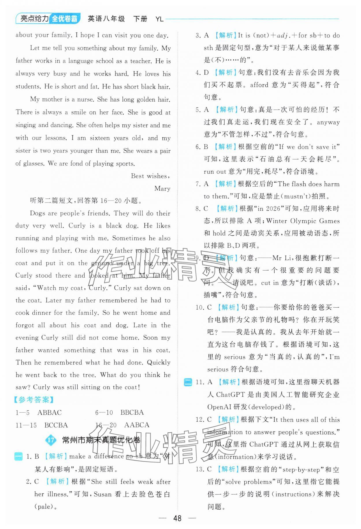 2024年亮点给力全优卷霸八年级英语下册译林版