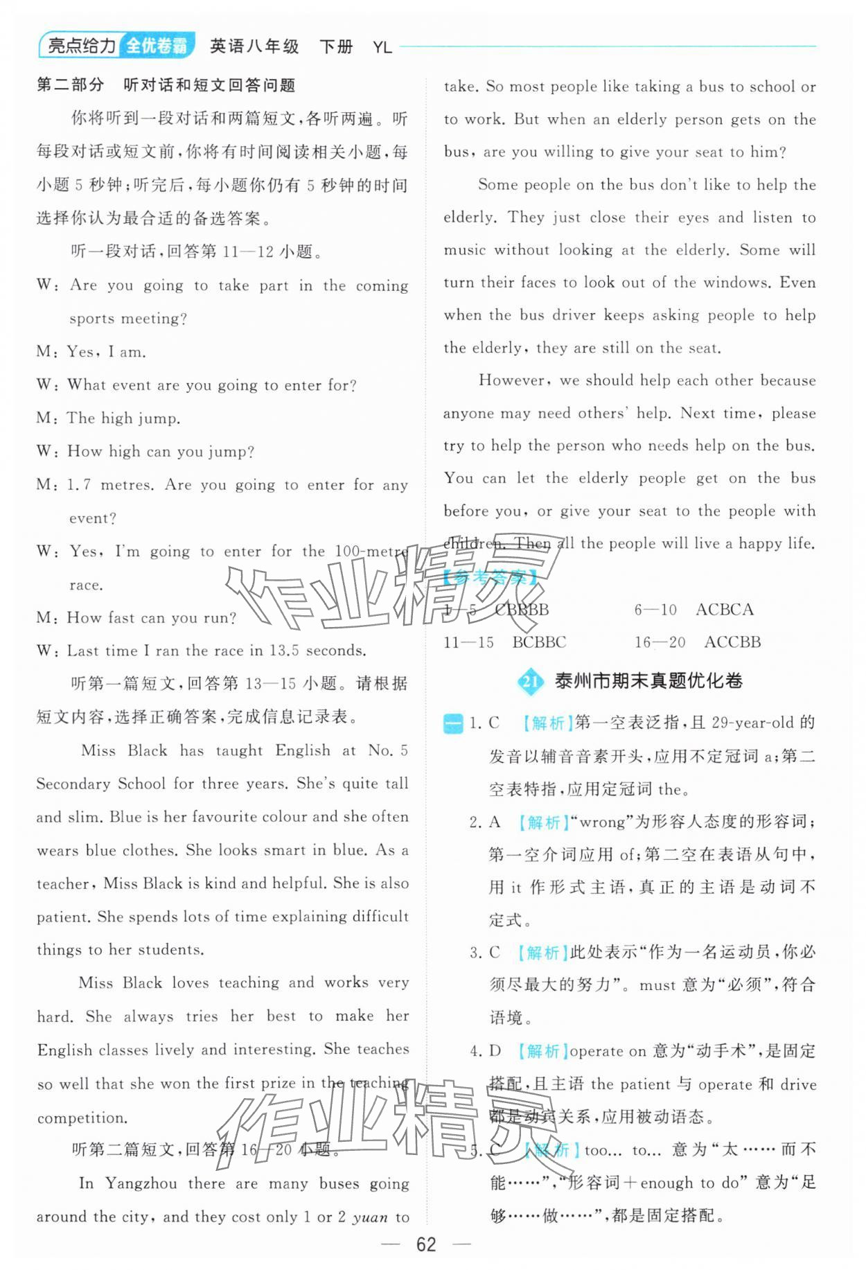 注:目前有些书本章节名称可能整理的还不是很完善,但都是按照顺序排列的,请同学们按照顺序仔细查找。练习册 2024年亮点给力全优卷霸八年级英语下册译林版 答案主要是用来给同学们做完题方便对答案用的,请勿直接抄袭。