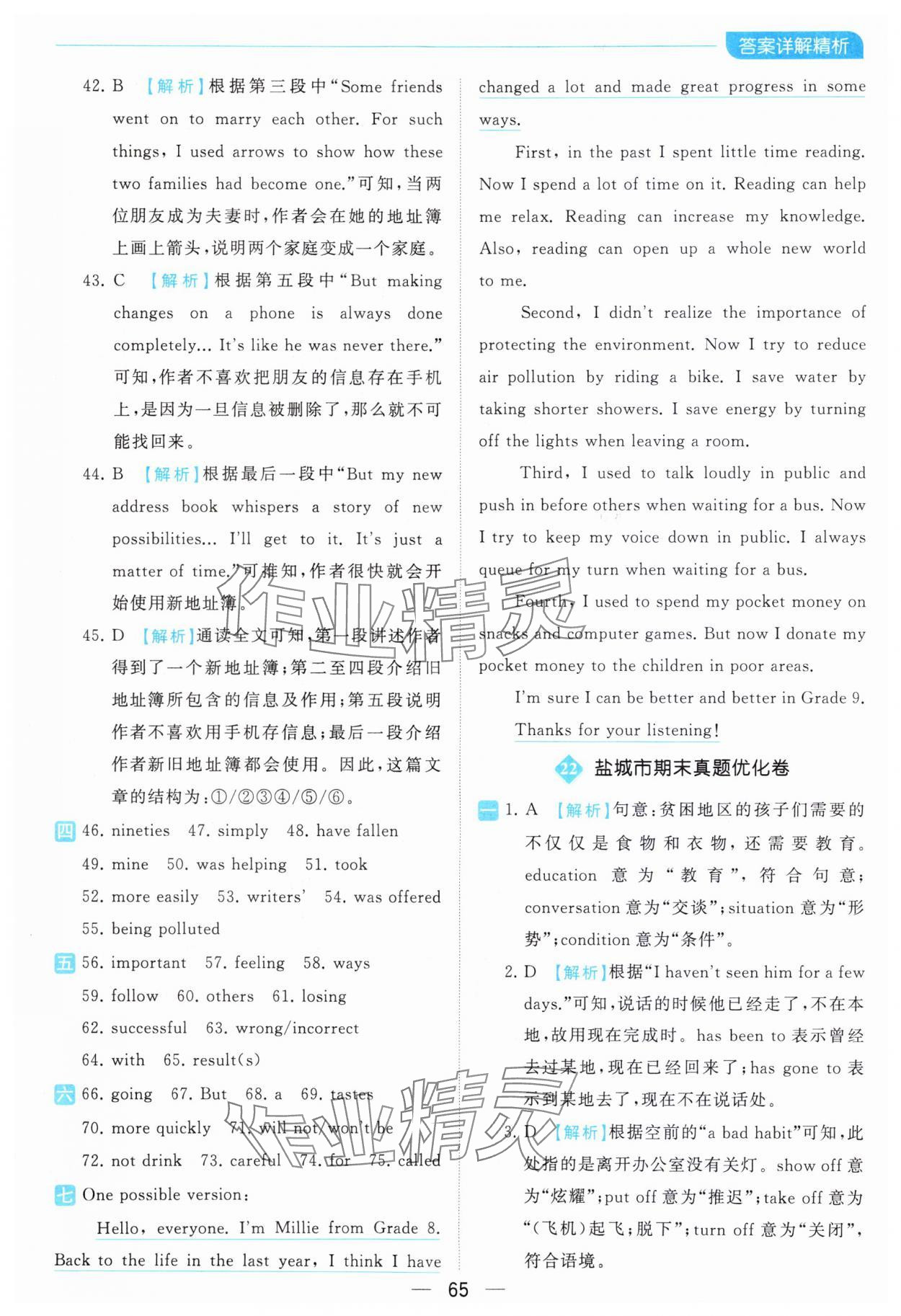 注:目前有些书本章节名称可能整理的还不是很完善,但都是按照顺序排列的,请同学们按照顺序仔细查找。练习册 2024年亮点给力全优卷霸八年级英语下册译林版 答案主要是用来给同学们做完题方便对答案用的,请勿直接抄袭。