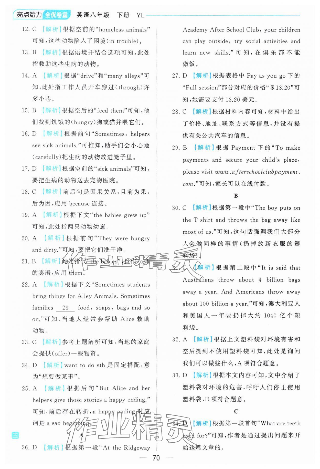 注:目前有些书本章节名称可能整理的还不是很完善,但都是按照顺序排列的,请同学们按照顺序仔细查找。练习册 2024年亮点给力全优卷霸八年级英语下册译林版 答案主要是用来给同学们做完题方便对答案用的,请勿直接抄袭。