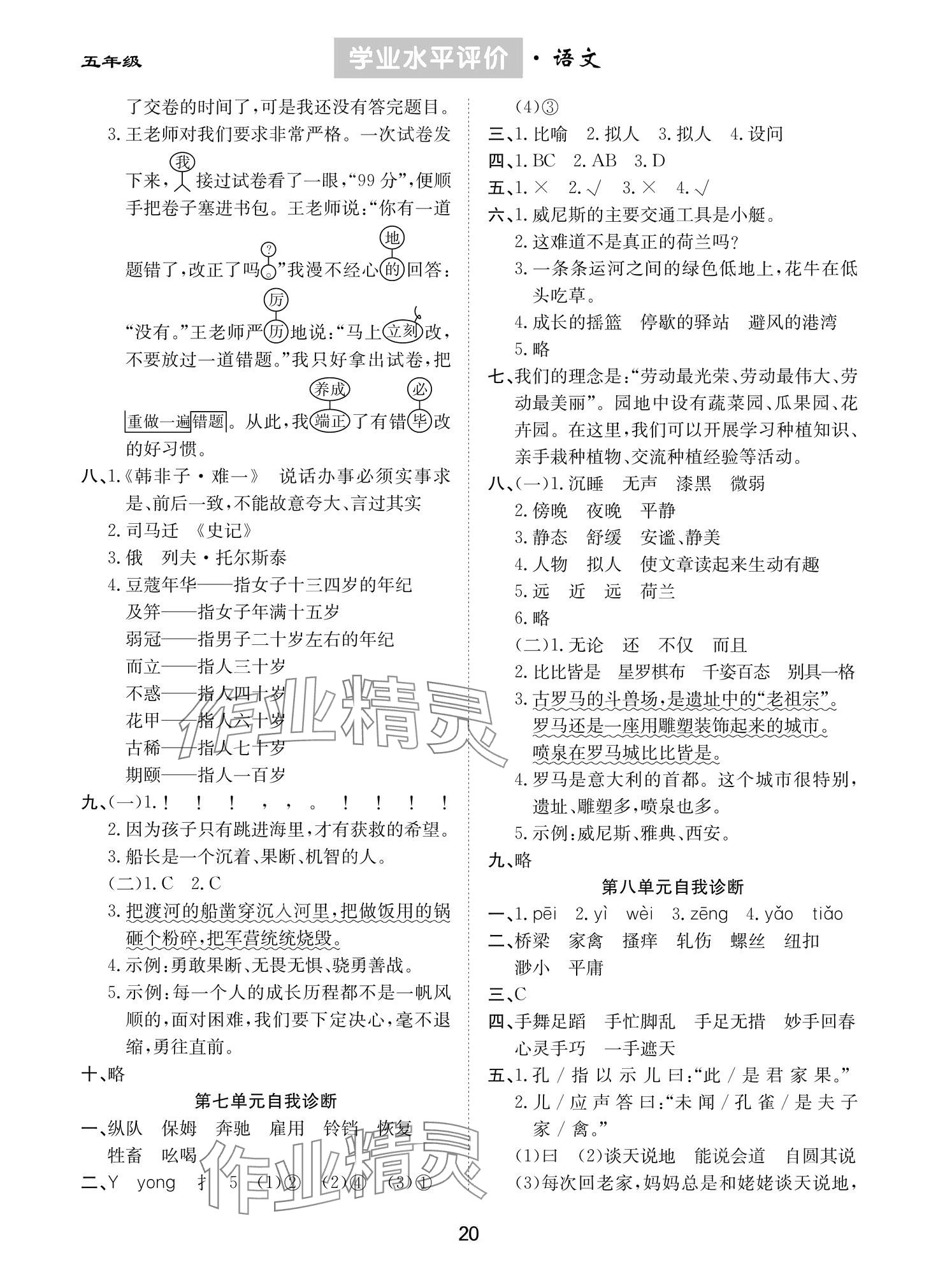 注:目前有些书本章节名称可能整理的还不是很完善,但都是按照顺序排列的,请同学们按照顺序仔细查找。练习册 2024年学业水平评价同步检测卷五年级语文下册人教版 答案主要是用来给同学们做完题方便对答案用的,请勿直接抄袭。