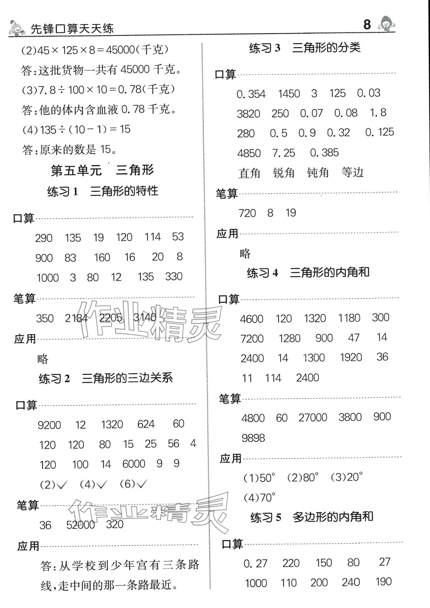 注:目前有些书本章节名称可能整理的还不是很完善,但都是按照顺序排列的,请同学们按照顺序仔细查找。练习册 2024年先锋口算天天练四年级数学下册人教版 答案主要是用来给同学们做完题方便对答案用的,请勿直接抄袭。