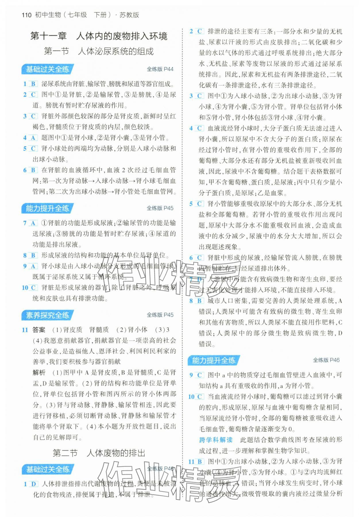 注:目前有些书本章节名称可能整理的还不是很完善,但都是按照顺序排列的,请同学们按照顺序仔细查找。练习册 2024年5年中考3年模拟七年级生物下册苏教版 答案主要是用来给同学们做完题方便对答案用的,请勿直接抄袭。