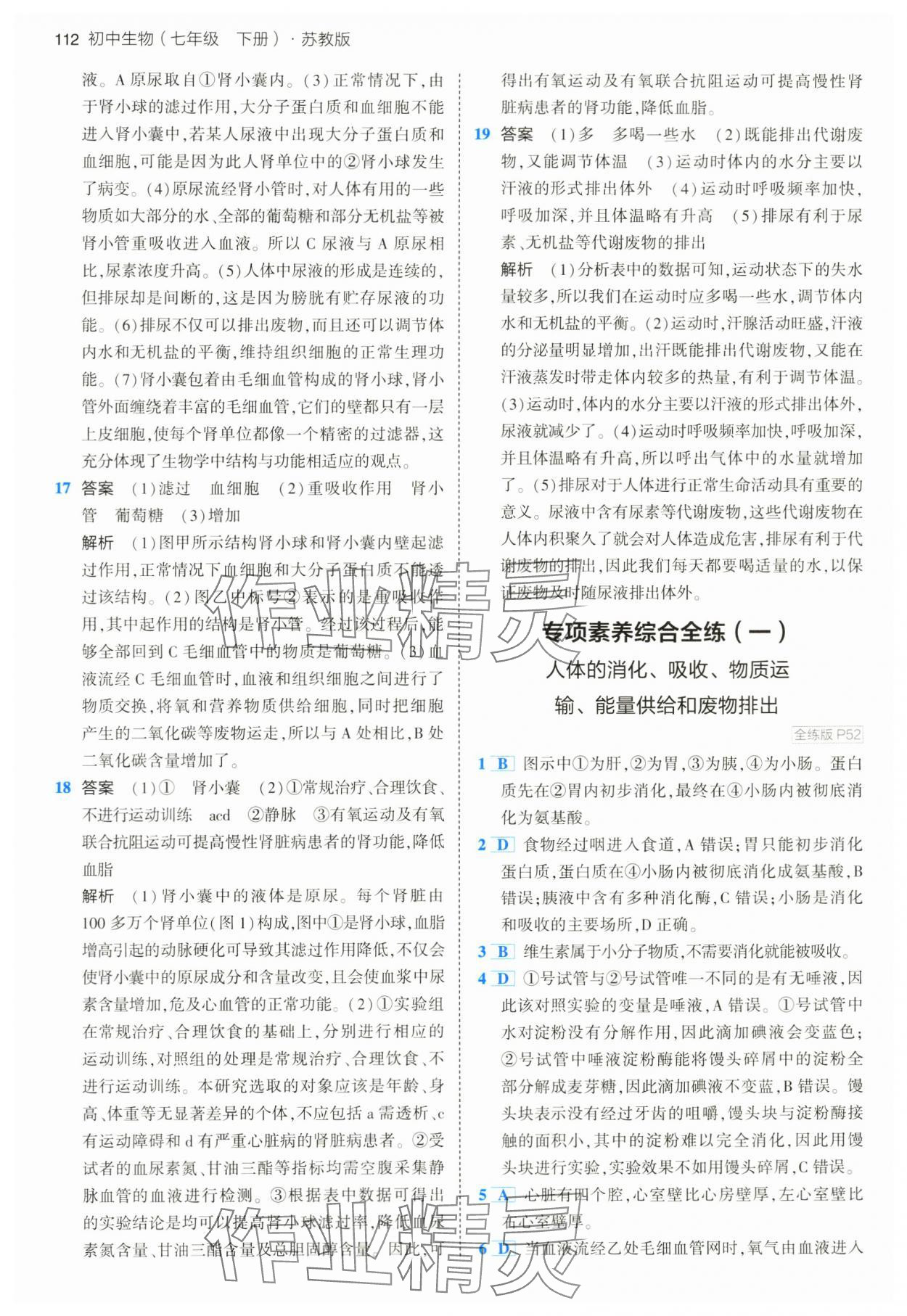 注:目前有些书本章节名称可能整理的还不是很完善,但都是按照顺序排列的,请同学们按照顺序仔细查找。练习册 2024年5年中考3年模拟七年级生物下册苏教版 答案主要是用来给同学们做完题方便对答案用的,请勿直接抄袭。
