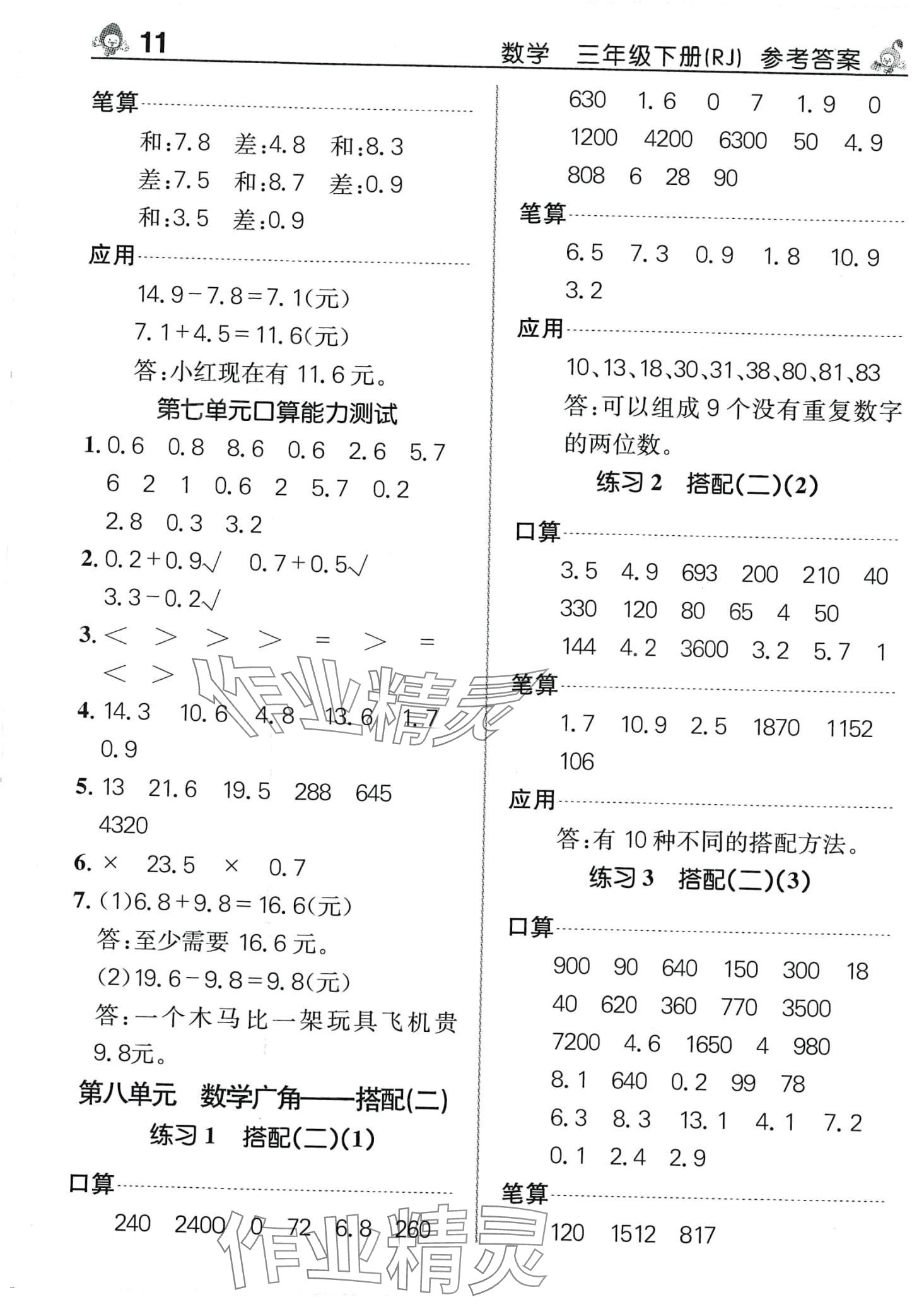 注:目前有些书本章节名称可能整理的还不是很完善,但都是按照顺序排列的,请同学们按照顺序仔细查找。练习册 2024年先锋口算天天练三年级数学下册人教版 答案主要是用来给同学们做完题方便对答案用的,请勿直接抄袭。