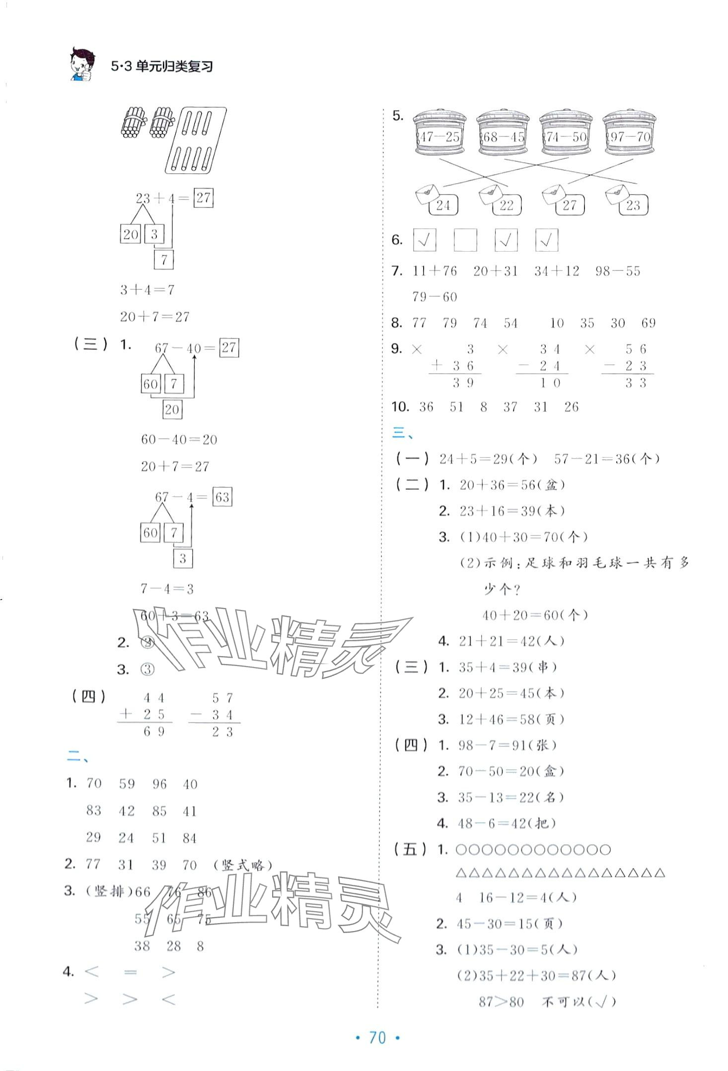 注:目前有些书本章节名称可能整理的还不是很完善,但都是按照顺序排列的,请同学们按照顺序仔细查找。练习册 2024年53单元归类复习一年级数学下册人教版 答案主要是用来给同学们做完题方便对答案用的,请勿直接抄袭。