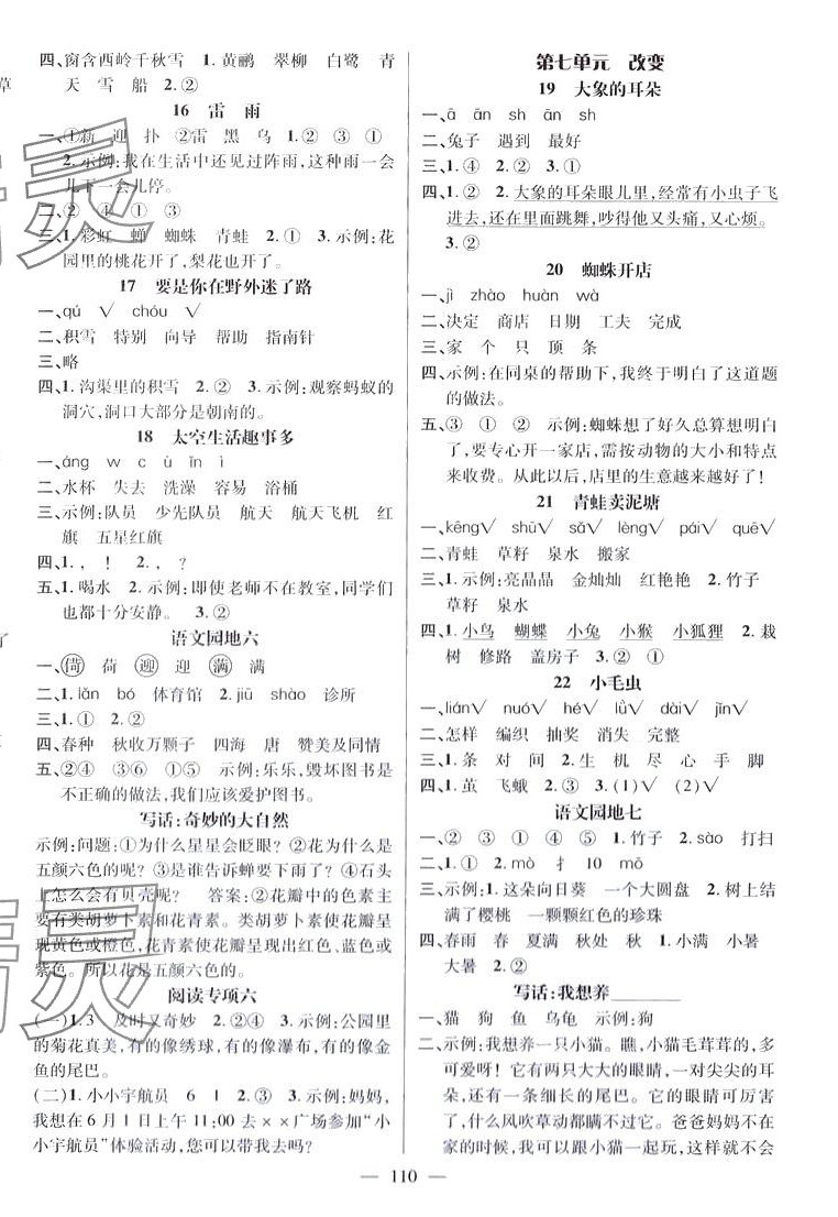 注:目前有些书本章节名称可能整理的还不是很完善,但都是按照顺序排列的,请同学们按照顺序仔细查找。练习册 2024年名师测控二年级语文下册人教版湖南专版 答案主要是用来给同学们做完题方便对答案用的,请勿直接抄袭。
