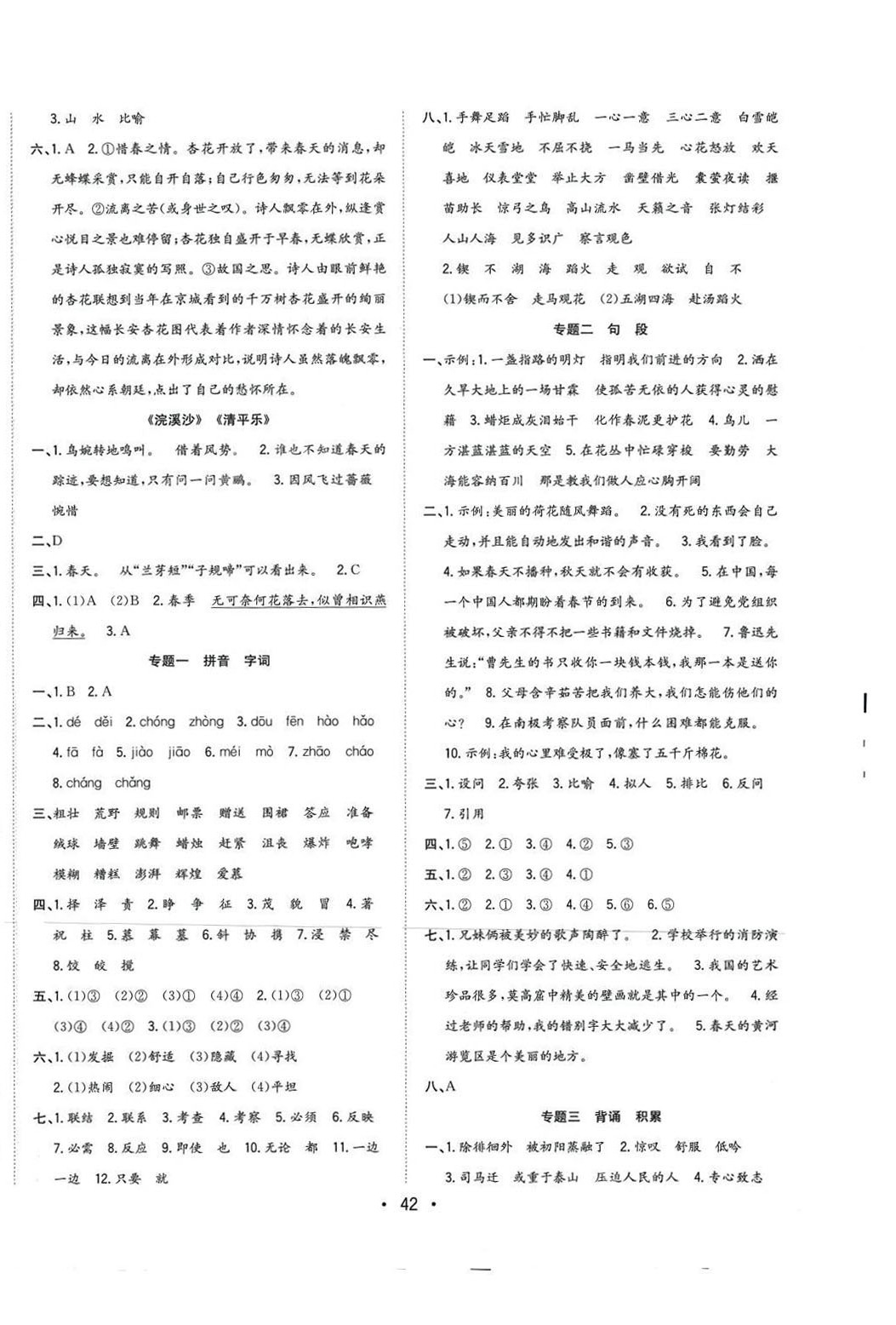 注:目前有些书本章节名称可能整理的还不是很完善,但都是按照顺序排列的,请同学们按照顺序仔细查找。练习册 2024年全频道课时作业六年级语文下册人教版 答案主要是用来给同学们做完题方便对答案用的,请勿直接抄袭。