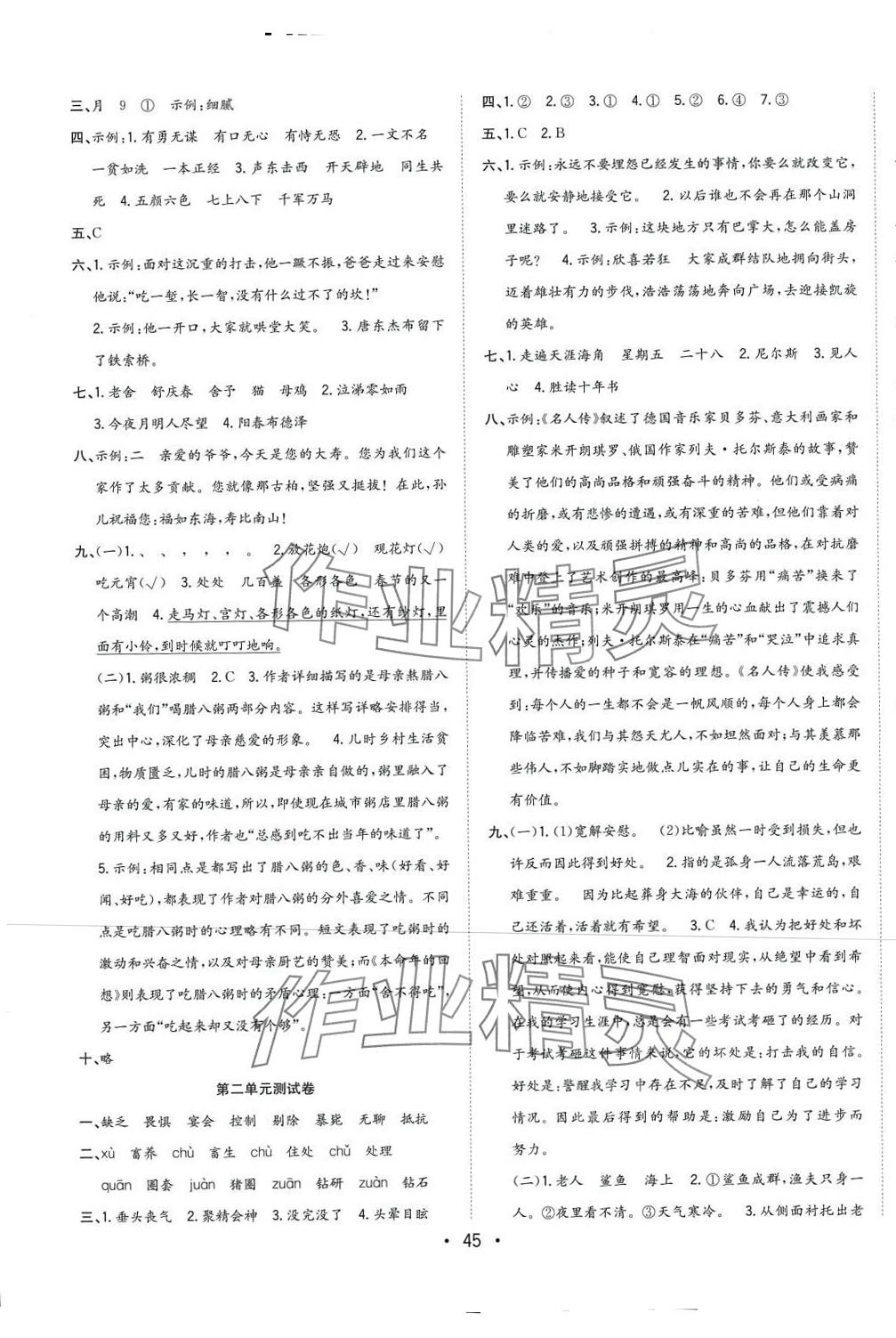 注:目前有些书本章节名称可能整理的还不是很完善,但都是按照顺序排列的,请同学们按照顺序仔细查找。练习册 2024年全频道课时作业六年级语文下册人教版 答案主要是用来给同学们做完题方便对答案用的,请勿直接抄袭。