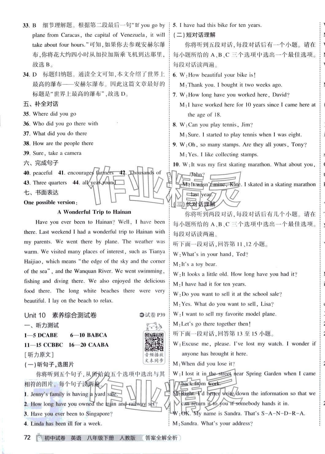 注:目前有些书本章节名称可能整理的还不是很完善,但都是按照顺序排列的,请同学们按照顺序仔细查找。练习册 2024年5年中考3年模拟初中试卷八年级英语下册人教版 答案主要是用来给同学们做完题方便对答案用的,请勿直接抄袭。