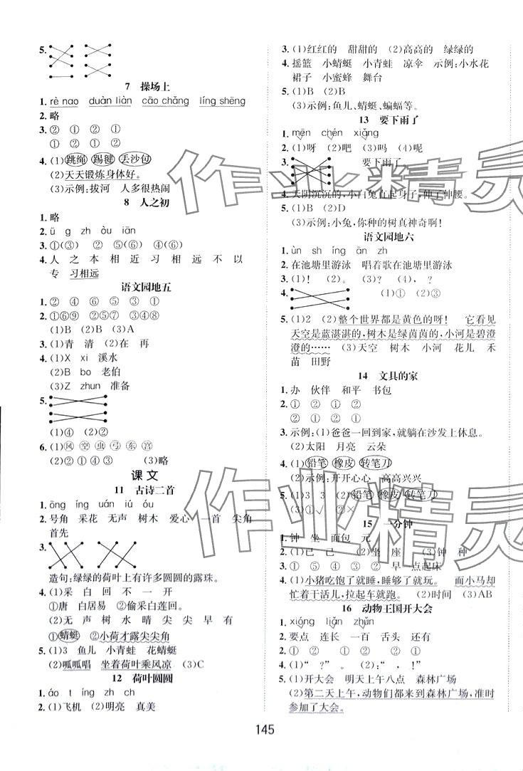 注:目前有些书本章节名称可能整理的还不是很完善,但都是按照顺序排列的,请同学们按照顺序仔细查找。练习册 2024年一课3练培优作业本一年级语文下册人教版福建专版 答案主要是用来给同学们做完题方便对答案用的,请勿直接抄袭。