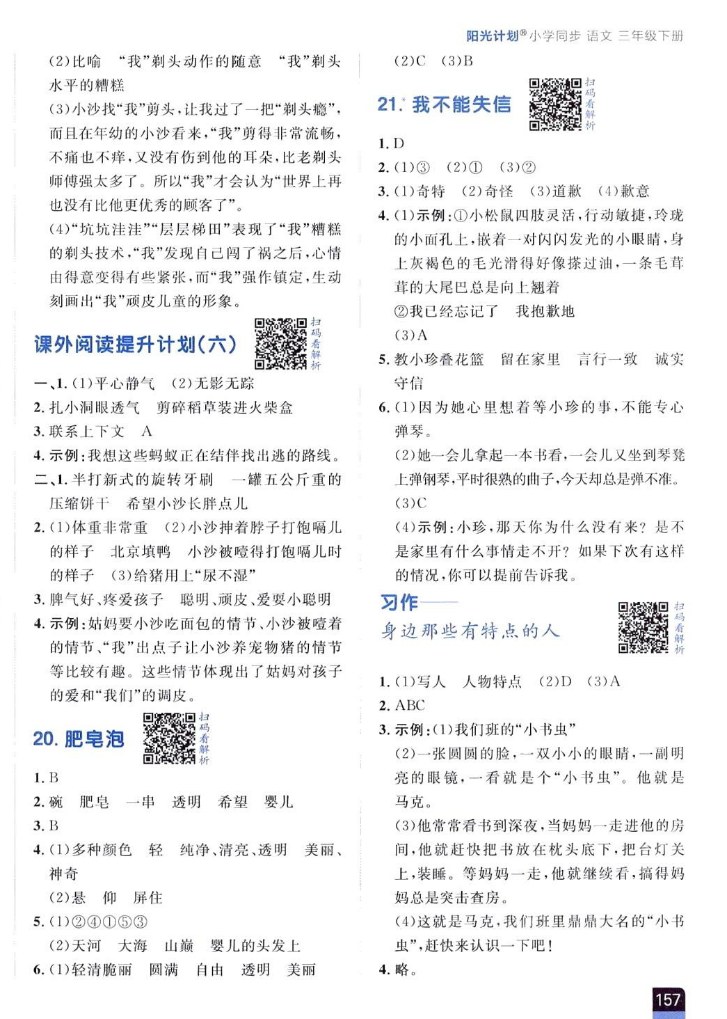 注:目前有些书本章节名称可能整理的还不是很完善,但都是按照顺序排列的,请同学们按照顺序仔细查找。练习册 2024年阳光计划小学同步三年级语文下册人教版 答案主要是用来给同学们做完题方便对答案用的,请勿直接抄袭。