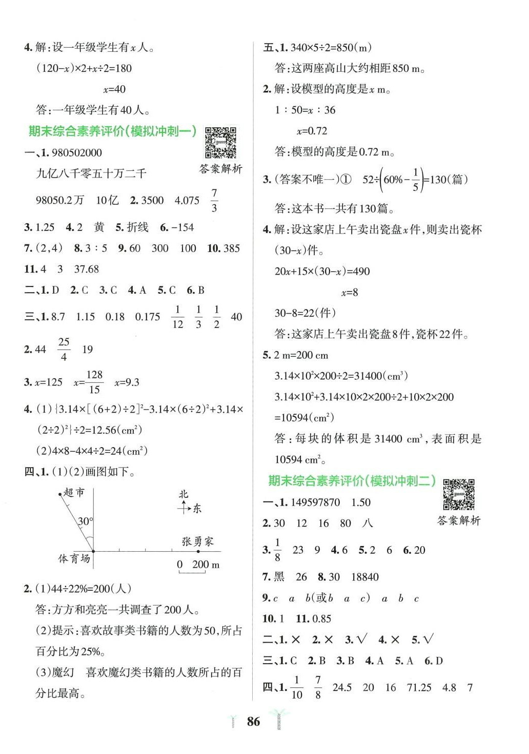注:目前有些书本章节名称可能整理的还不是很完善,但都是按照顺序排列的,请同学们按照顺序仔细查找。练习册 2024年小学学霸冲A卷六年级数学下册北师大版 答案主要是用来给同学们做完题方便对答案用的,请勿直接抄袭。