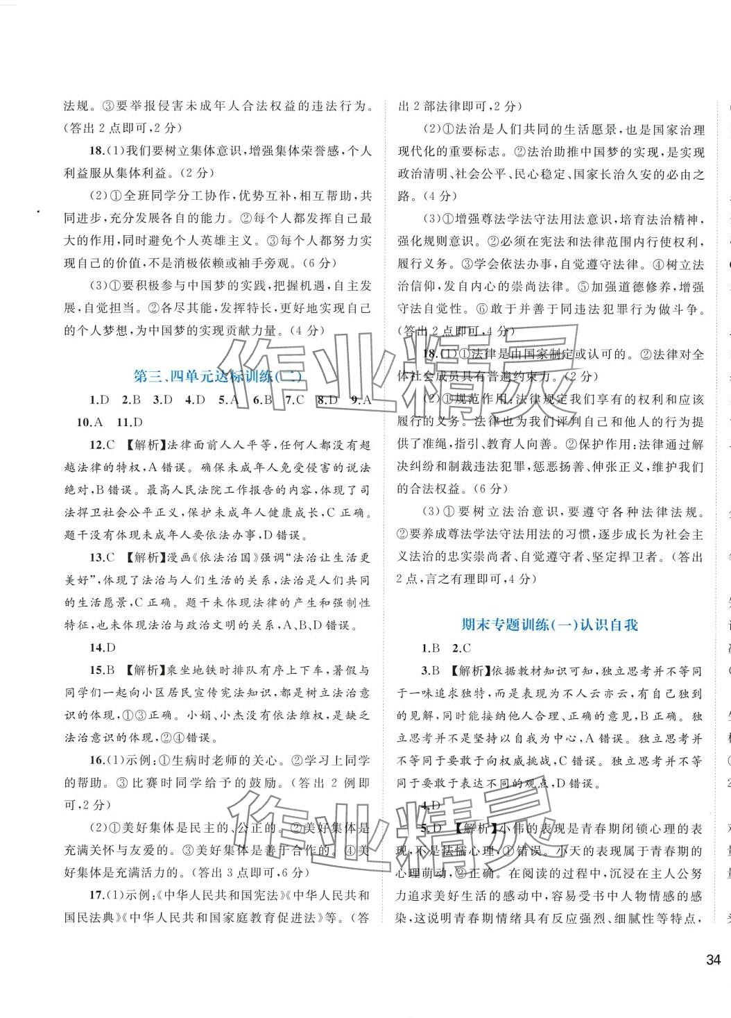 注:目前有些书本章节名称可能整理的还不是很完善,但都是按照顺序排列的,请同学们按照顺序仔细查找。练习册 2024年新课程学习与测评单元双测七年级道德与法治下册人教版A版 答案主要是用来给同学们做完题方便对答案用的,请勿直接抄袭。
