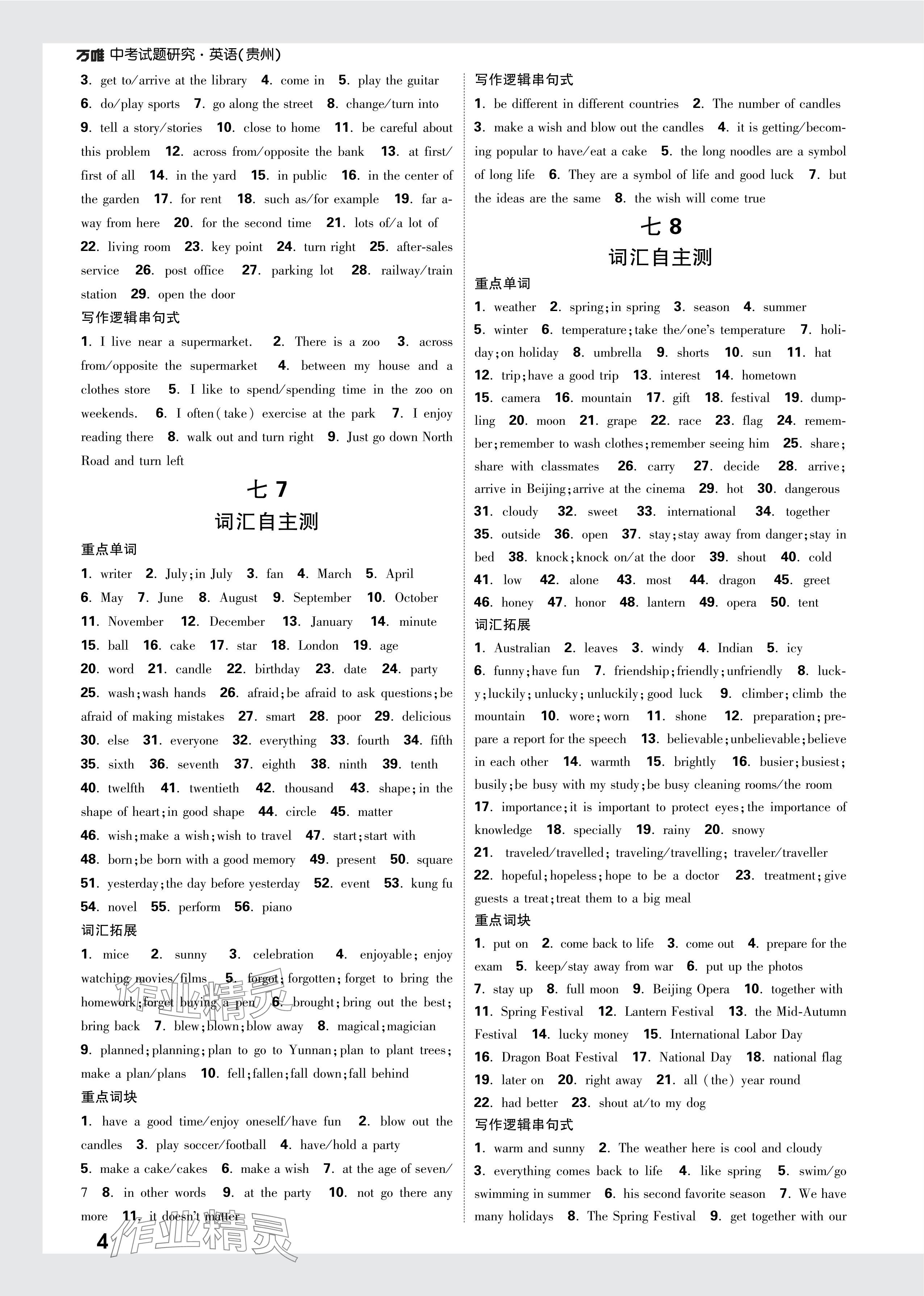 注:目前有些书本章节名称可能整理的还不是很完善,但都是按照顺序排列的,请同学们按照顺序仔细查找。练习册 2024年万唯中考试题研究英语贵州专版 答案主要是用来给同学们做完题方便对答案用的,请勿直接抄袭。