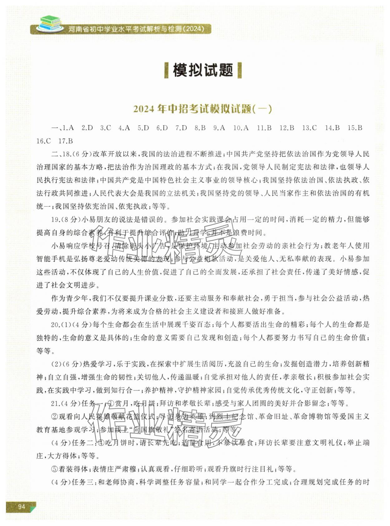 2024年河南省初中学业水平考试解析与检测道德与法治下册
