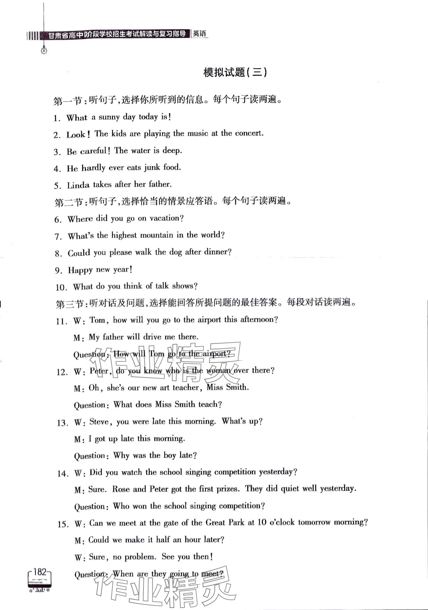 2024年甘肃省高中阶段学校招生考试说明与复习指导英语