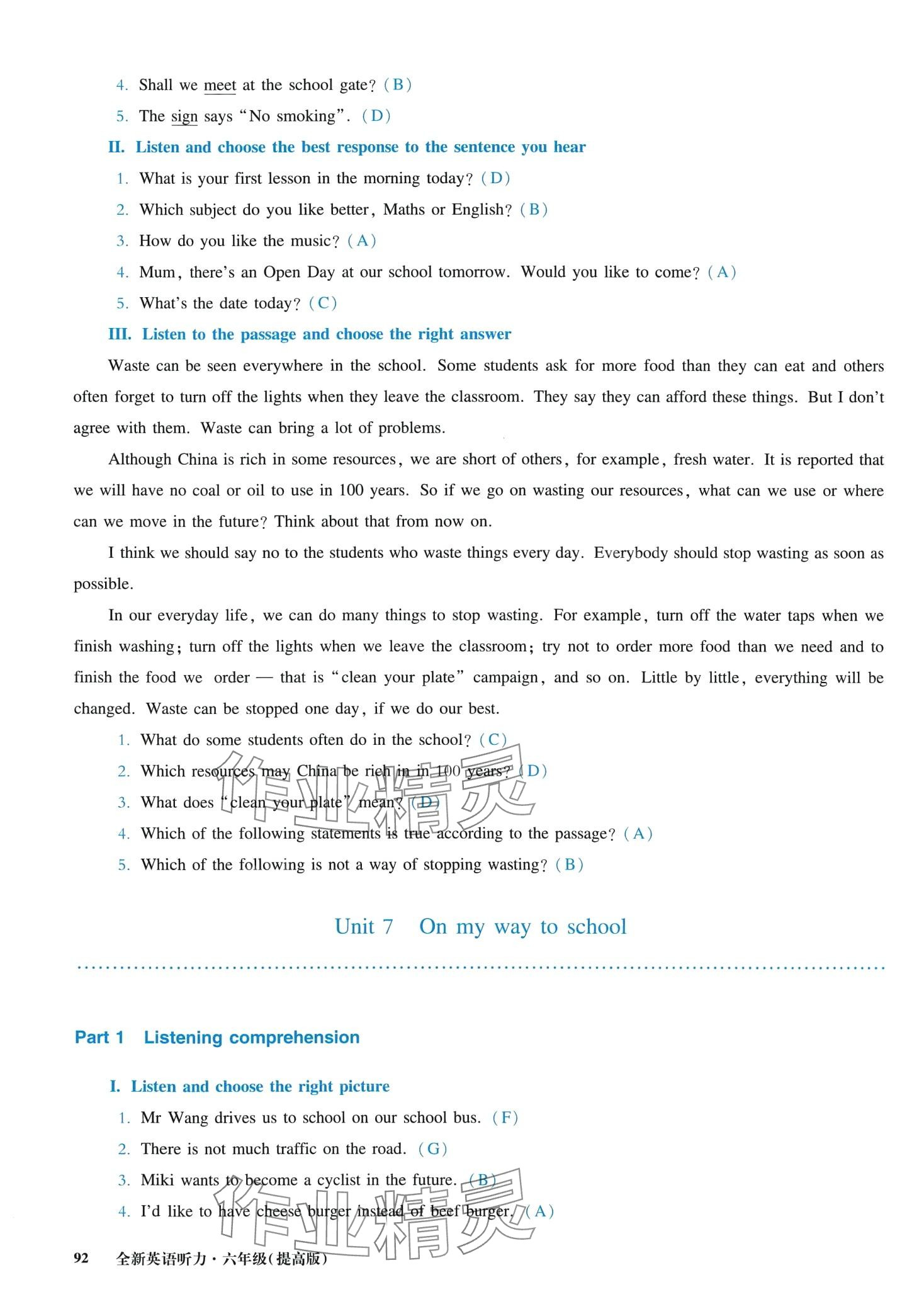 注:目前有些书本章节名称可能整理的还不是很完善,但都是按照顺序排列的,请同学们按照顺序仔细查找。练习册 2024年全新英语听力六年级提高版 答案主要是用来给同学们做完题方便对答案用的,请勿直接抄袭。