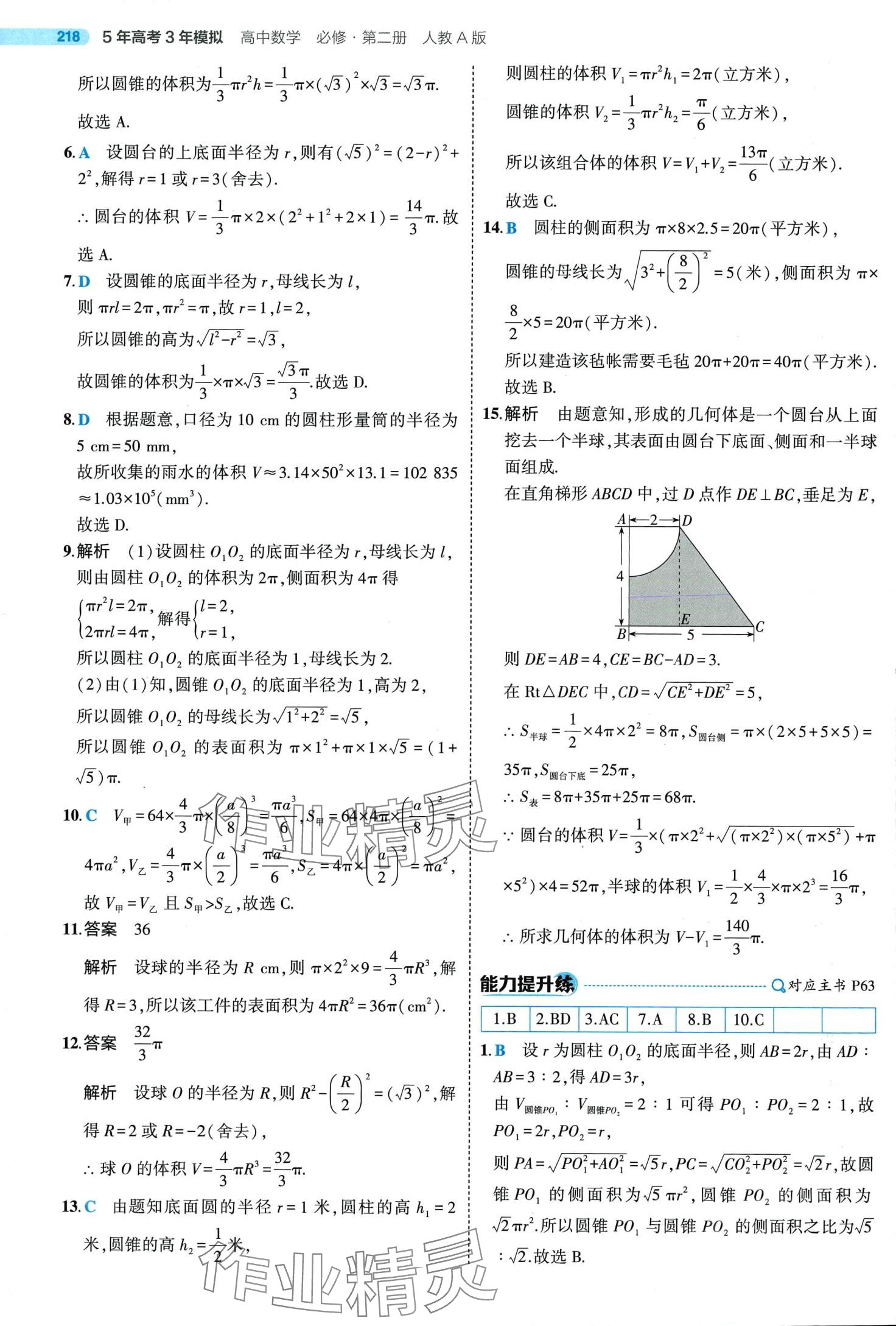 注:目前有些书本章节名称可能整理的还不是很完善,但都是按照顺序排列的,请同学们按照顺序仔细查找。练习册 2024年5年高考3年模拟高中数学必修第二册人教A版 答案主要是用来给同学们做完题方便对答案用的,请勿直接抄袭。