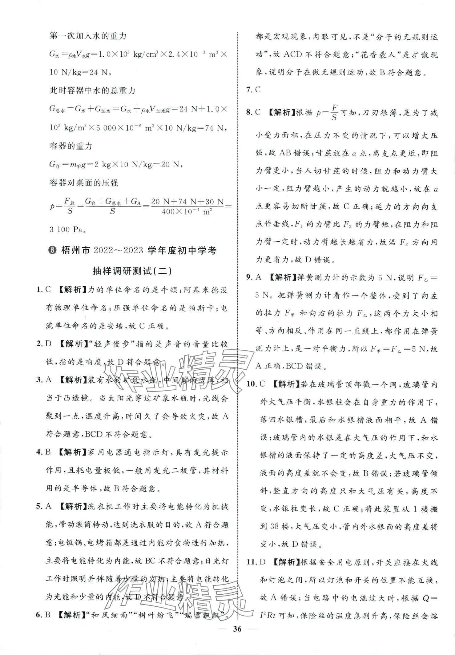 注:目前有些书本章节名称可能整理的还不是很完善,但都是按照顺序排列的,请同学们按照顺序仔细查找。练习册 2024年中考金卷中考试题精编物理广西专版 答案主要是用来给同学们做完题方便对答案用的,请勿直接抄袭。