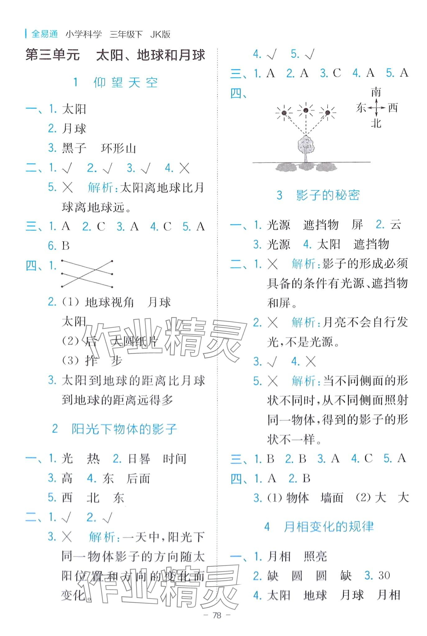 注:目前有些书本章节名称可能整理的还不是很完善,但都是按照顺序排列的,请同学们按照顺序仔细查找。练习册 2024年全易通三年级科学下册教科版 答案主要是用来给同学们做完题方便对答案用的,请勿直接抄袭。