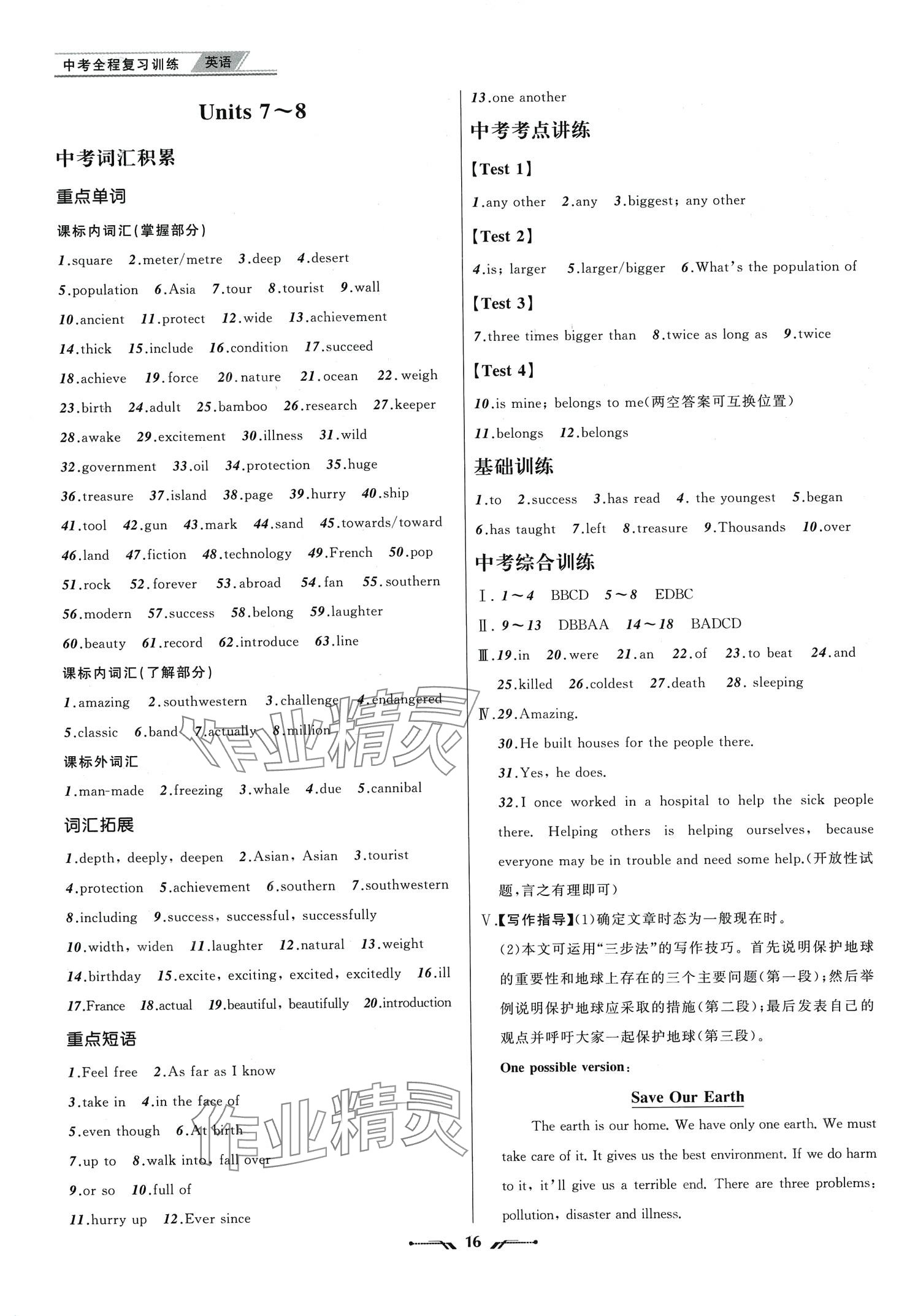 注:目前有些书本章节名称可能整理的还不是很完善,但都是按照顺序排列的,请同学们按照顺序仔细查找。练习册 2024年中考全程复习训练英语 答案主要是用来给同学们做完题方便对答案用的,请勿直接抄袭。