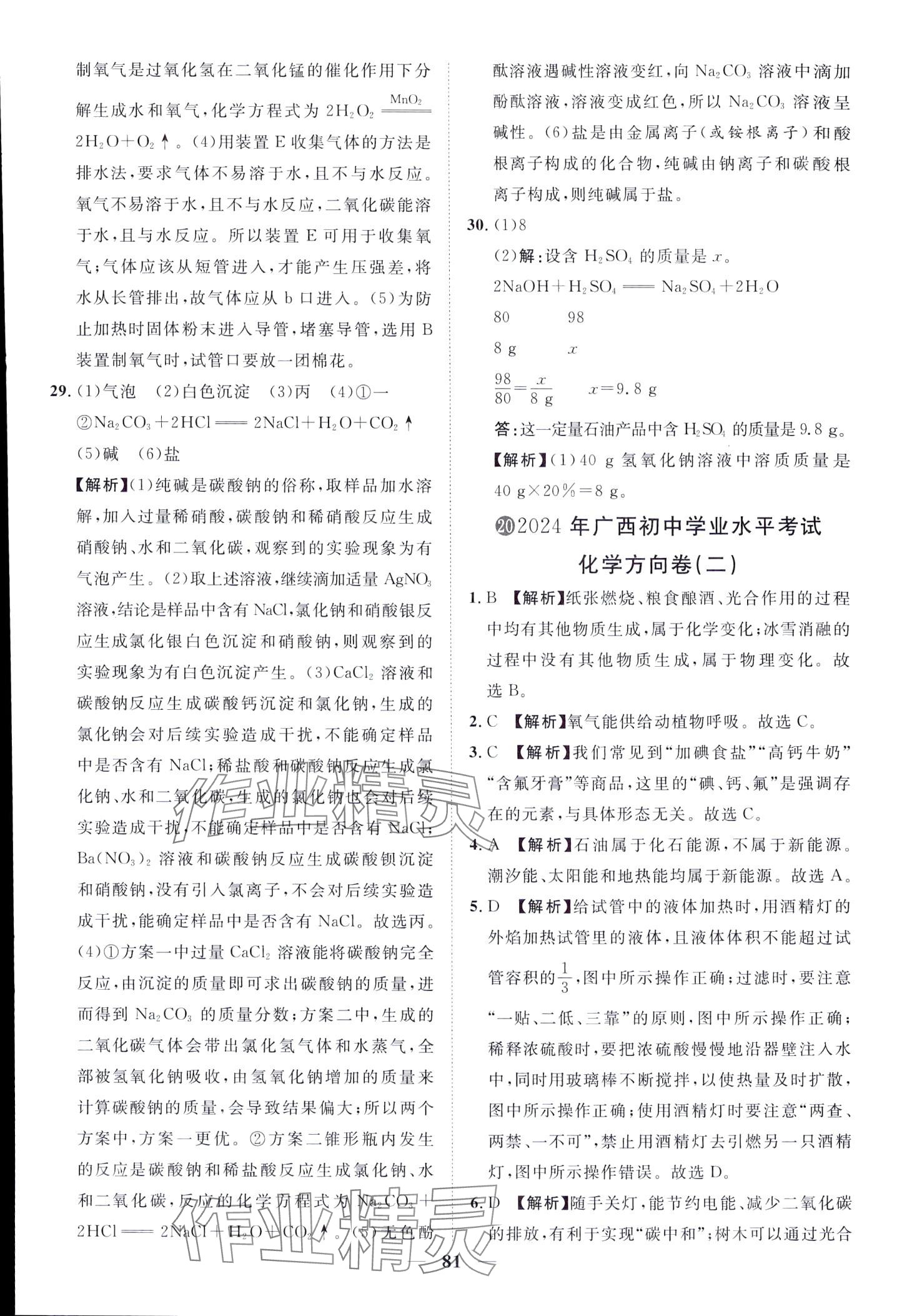注:目前有些书本章节名称可能整理的还不是很完善,但都是按照顺序排列的,请同学们按照顺序仔细查找。练习册 2024年中考金卷中考试题精编化学广西专版 答案主要是用来给同学们做完题方便对答案用的,请勿直接抄袭。