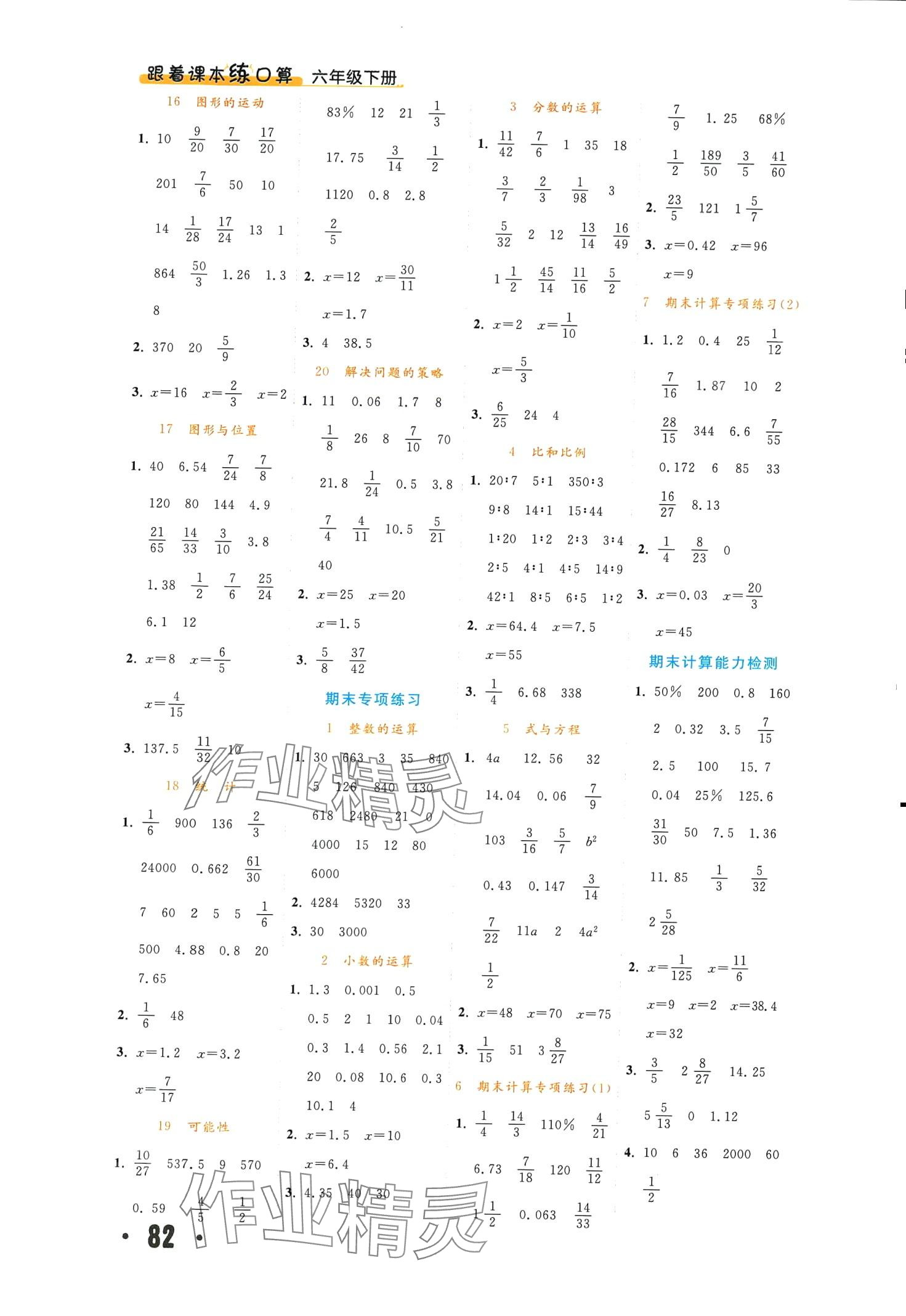 注:目前有些书本章节名称可能整理的还不是很完善,但都是按照顺序排列的,请同学们按照顺序仔细查找。练习册 2024年跟着课本练口算六年级数学下册北师大版 答案主要是用来给同学们做完题方便对答案用的,请勿直接抄袭。