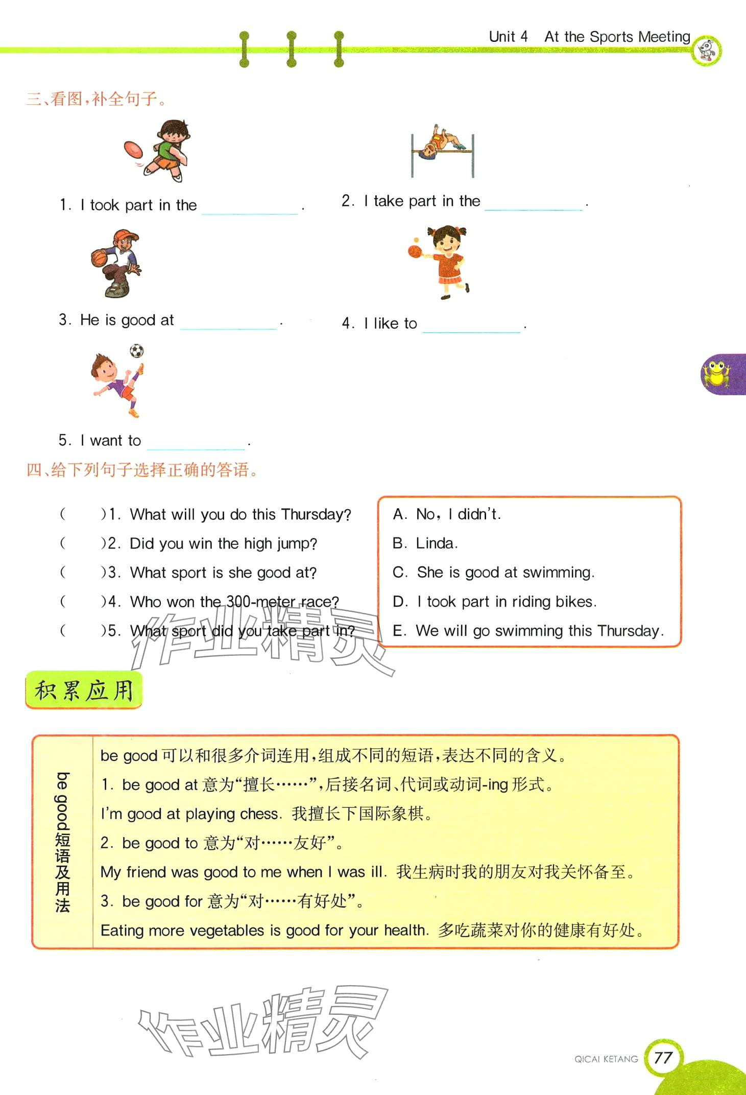注:目前有些书本章节名称可能整理的还不是很完善,但都是按照顺序排列的,请同学们按照顺序仔细查找。练习册 2025年教材课本六年级英语下册陕旅版 答案主要是用来给同学们做完题方便对答案用的,请勿直接抄袭。