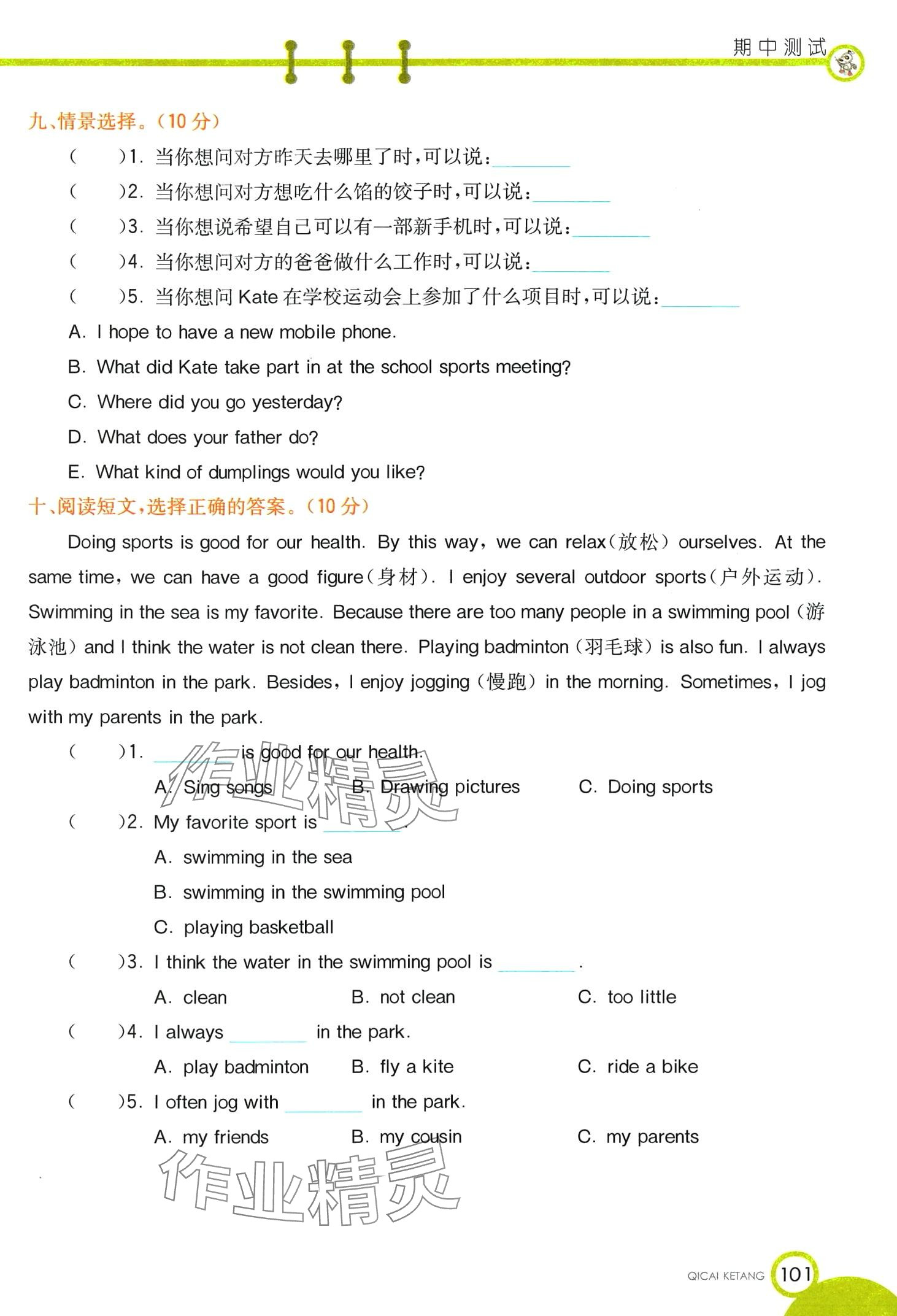 注:目前有些书本章节名称可能整理的还不是很完善,但都是按照顺序排列的,请同学们按照顺序仔细查找。练习册 2025年教材课本六年级英语下册陕旅版 答案主要是用来给同学们做完题方便对答案用的,请勿直接抄袭。