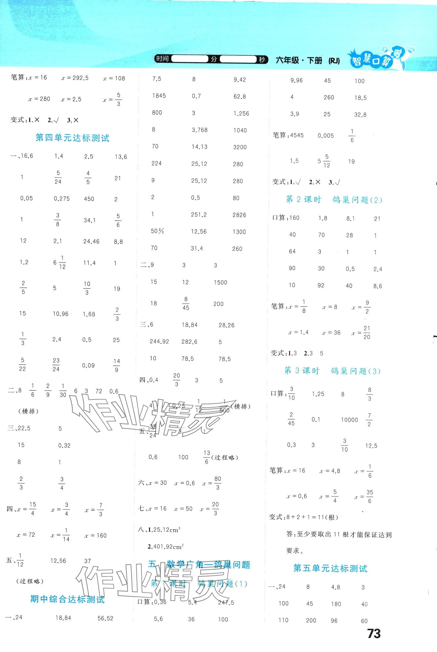 注:目前有些书本章节名称可能整理的还不是很完善,但都是按照顺序排列的,请同学们按照顺序仔细查找。练习册 2024年智慧口算六年级数学下册人教版 答案主要是用来给同学们做完题方便对答案用的,请勿直接抄袭。