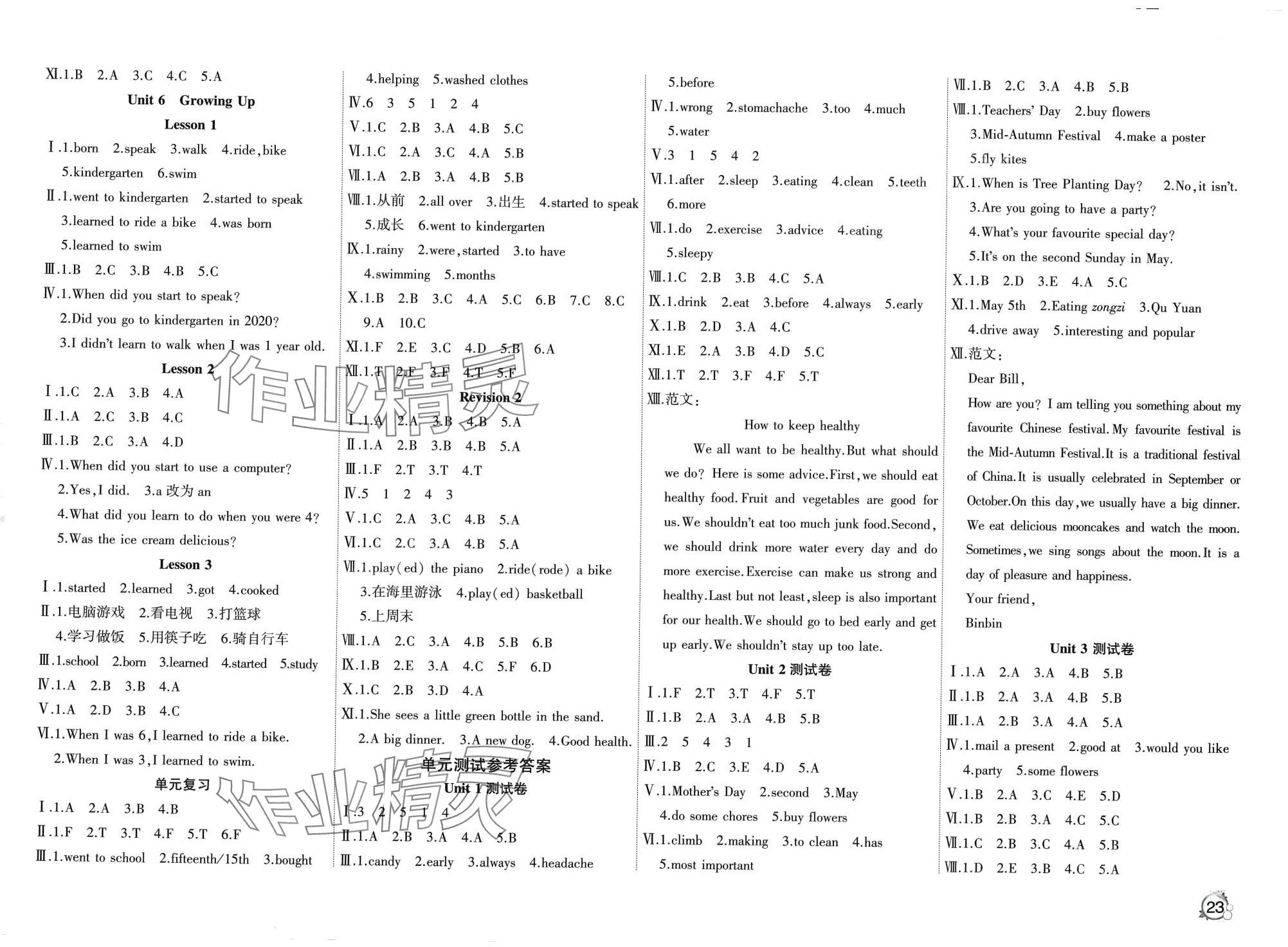 注:目前有些书本章节名称可能整理的还不是很完善,但都是按照顺序排列的,请同学们按照顺序仔细查找。练习册 2024年优派全能检测五年级英语下册人教新起点 答案主要是用来给同学们做完题方便对答案用的,请勿直接抄袭。