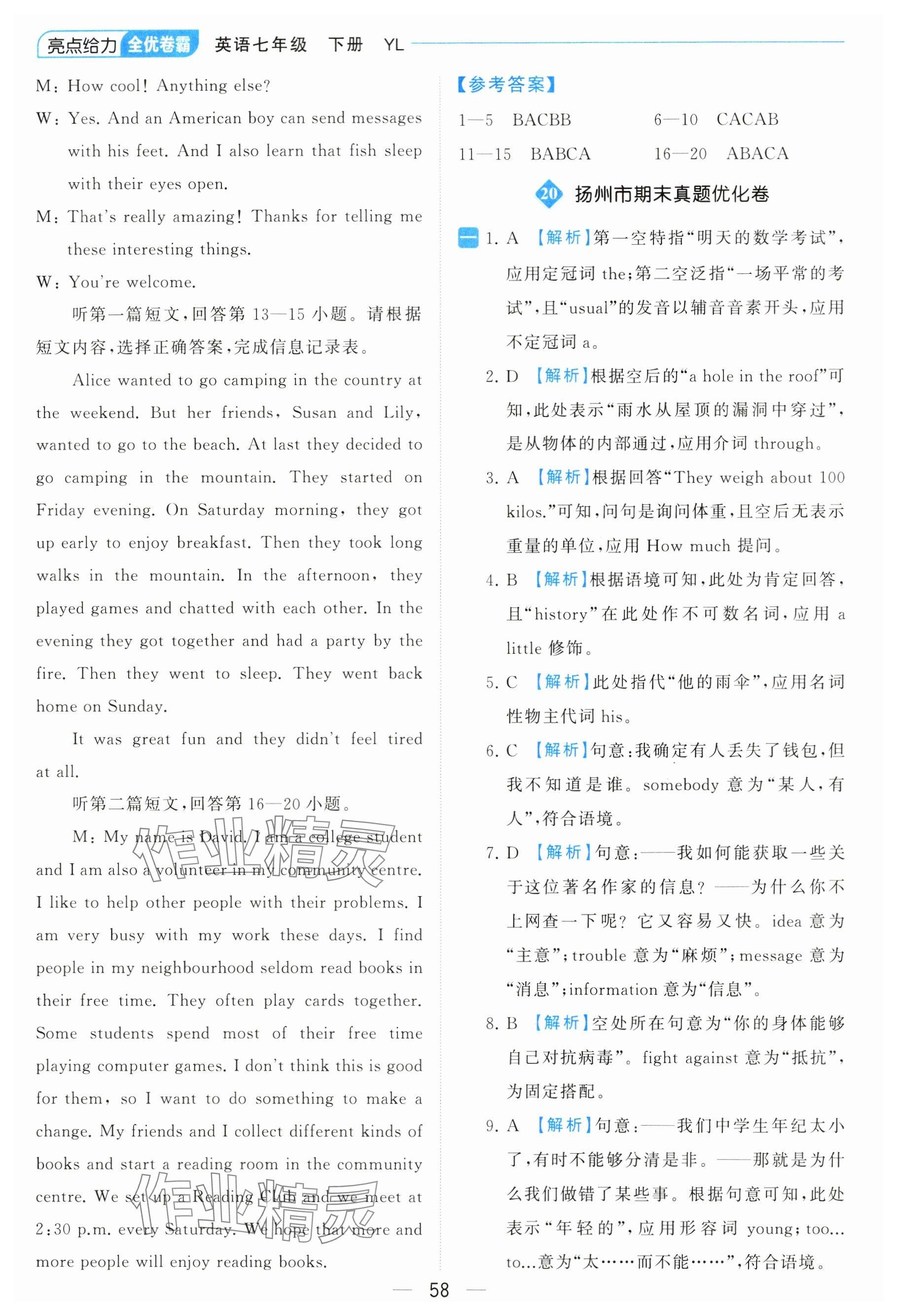 2024年亮点给力全优卷霸七年级英语下册译林版