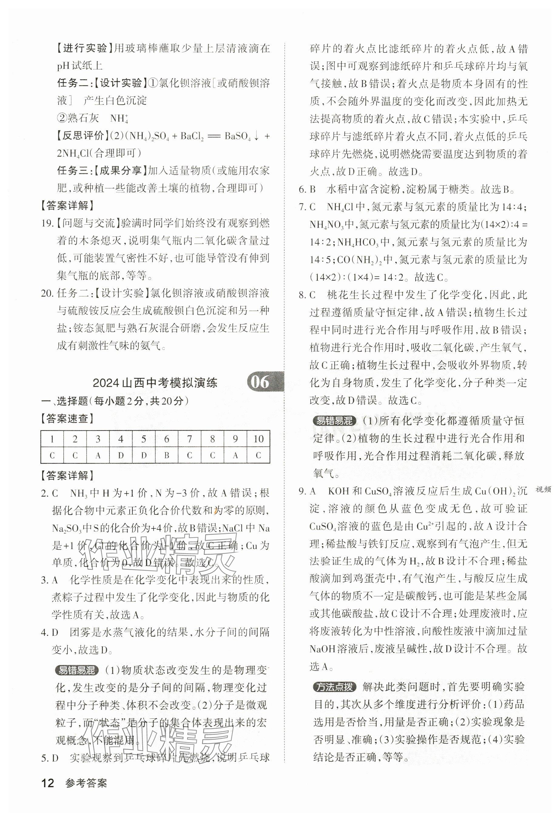 注:目前有些书本章节名称可能整理的还不是很完善,但都是按照顺序排列的,请同学们按照顺序仔细查找。练习册 2024年晋文源中考模拟演练化学山西专版 答案主要是用来给同学们做完题方便对答案用的,请勿直接抄袭。