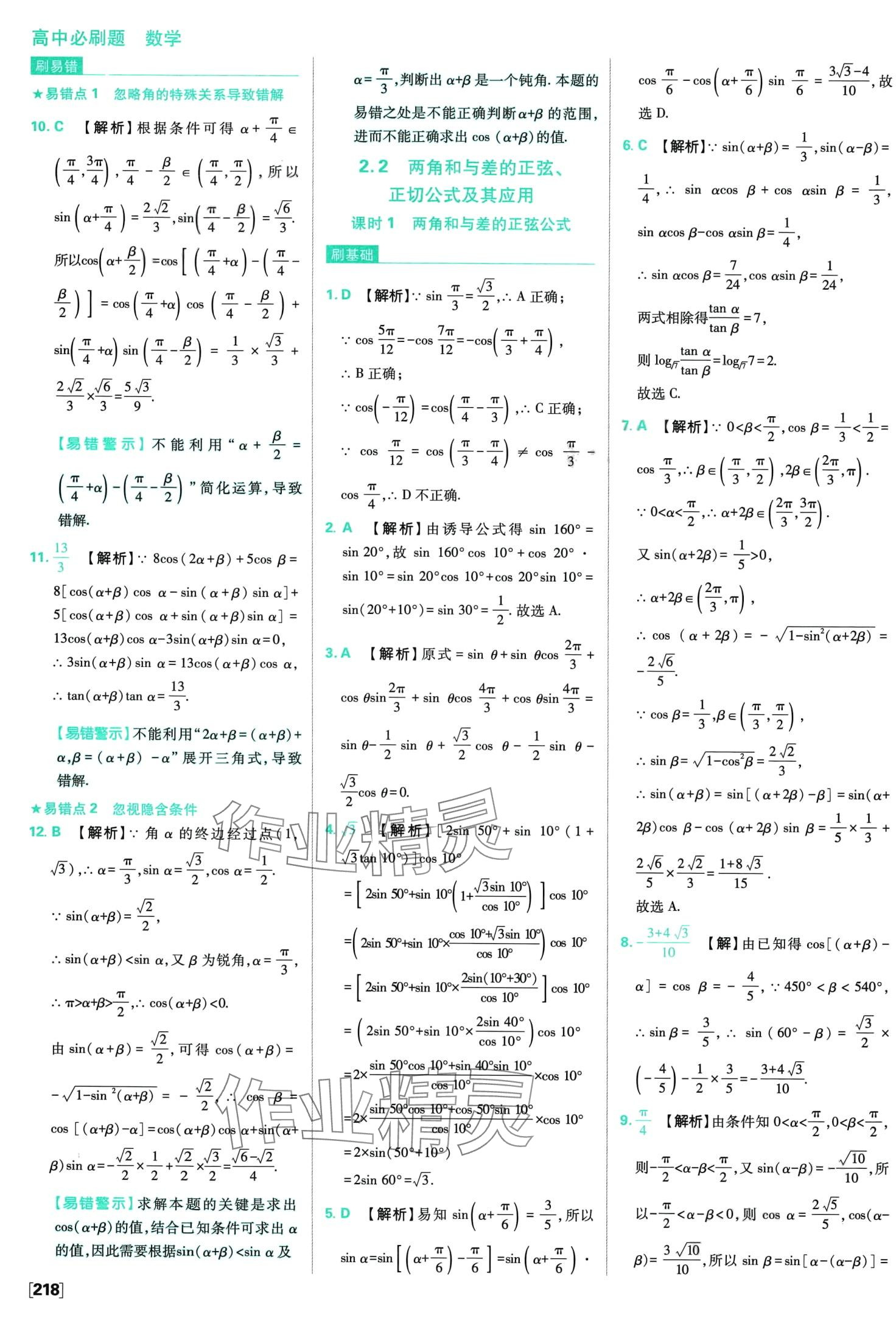 注:目前有些书本章节名称可能整理的还不是很完善,但都是按照顺序排列的,请同学们按照顺序仔细查找。练习册 2024年高中必刷题高中数学必修第二册北师大版 答案主要是用来给同学们做完题方便对答案用的,请勿直接抄袭。