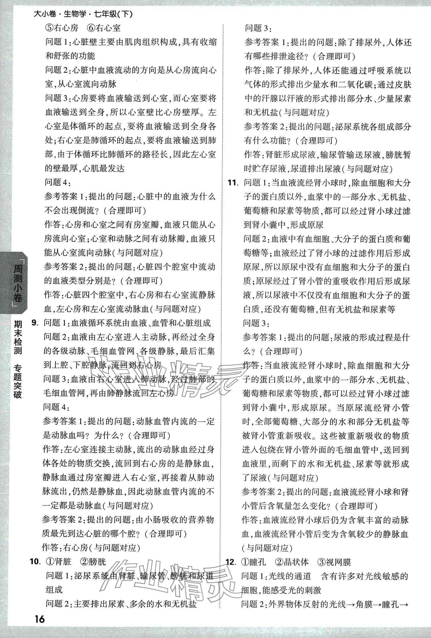 注:目前有些书本章节名称可能整理的还不是很完善,但都是按照顺序排列的,请同学们按照顺序仔细查找。练习册 2024年万唯中考大小卷七年级生物下册 答案主要是用来给同学们做完题方便对答案用的,请勿直接抄袭。