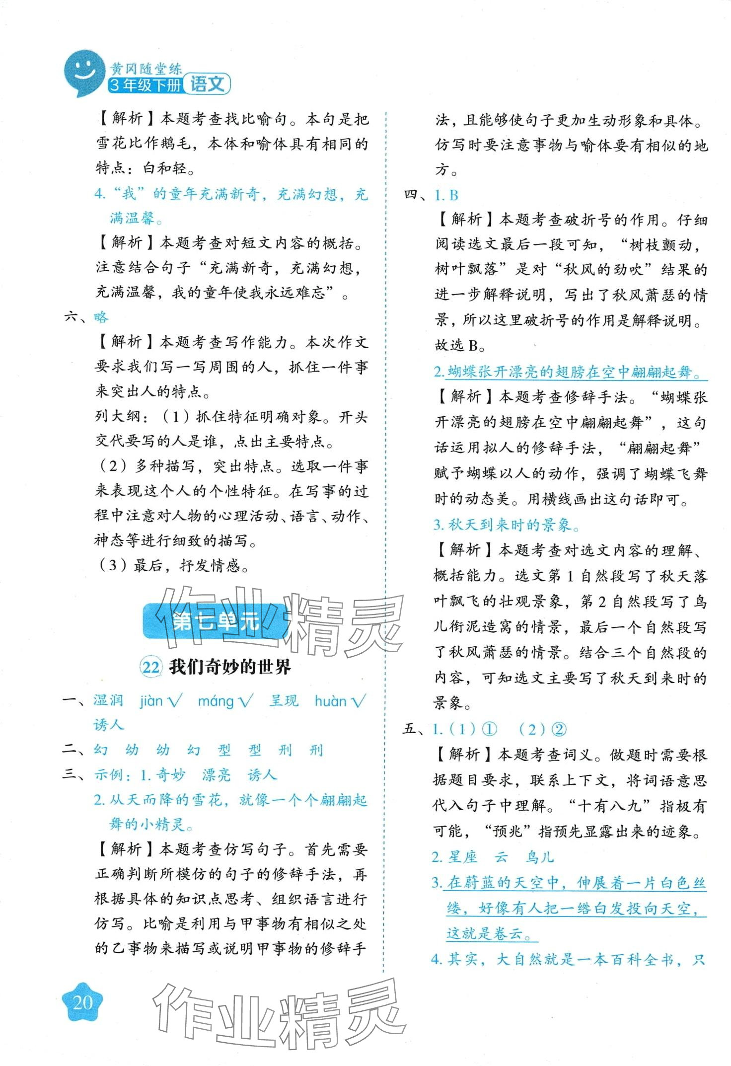 注:目前有些书本章节名称可能整理的还不是很完善,但都是按照顺序排列的,请同学们按照顺序仔细查找。练习册 2024年黄冈随堂练三年级语文下册人教版 答案主要是用来给同学们做完题方便对答案用的,请勿直接抄袭。