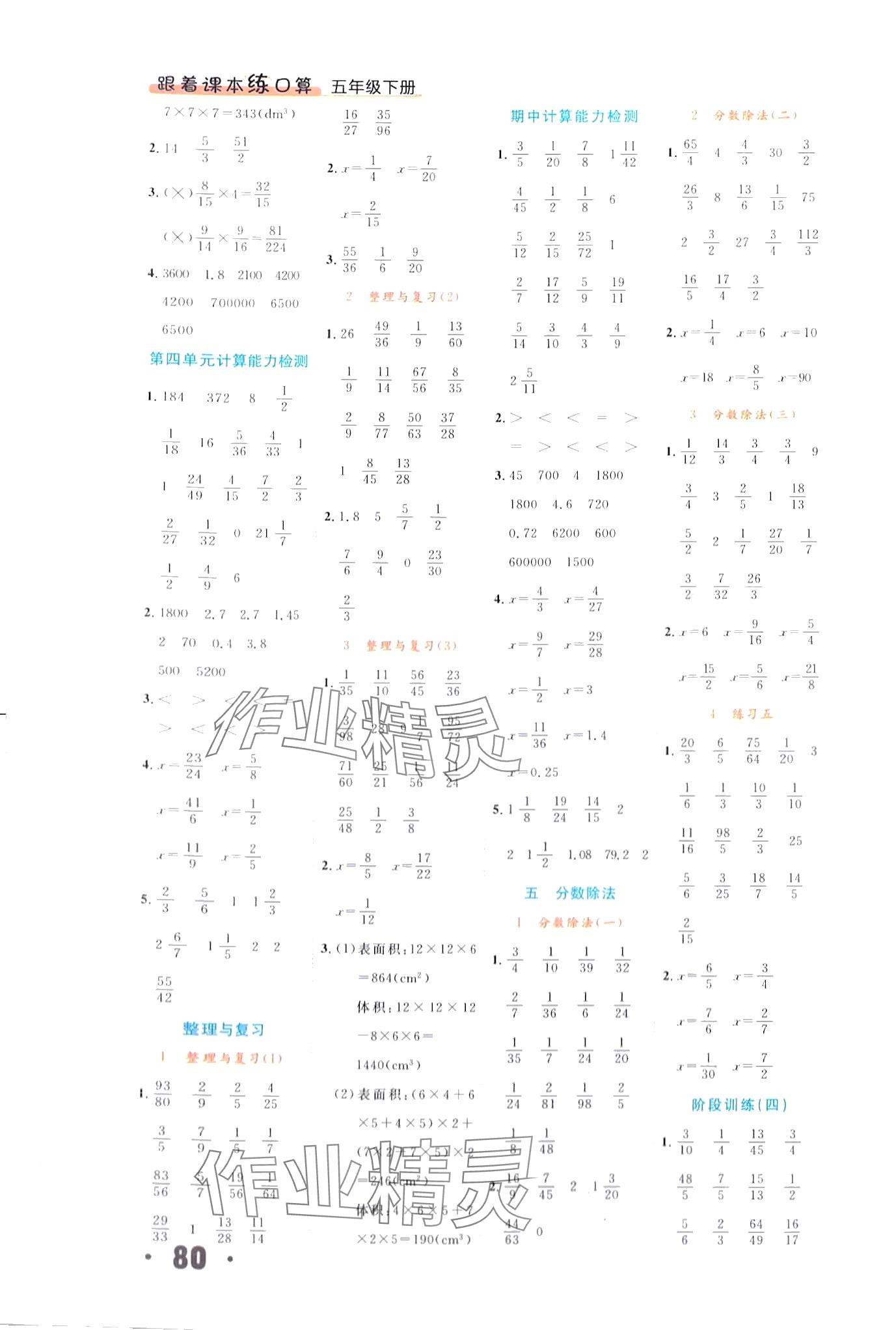 注:目前有些书本章节名称可能整理的还不是很完善,但都是按照顺序排列的,请同学们按照顺序仔细查找。练习册 2024年跟着课本练口算五年级数学下册北师大版 答案主要是用来给同学们做完题方便对答案用的,请勿直接抄袭。