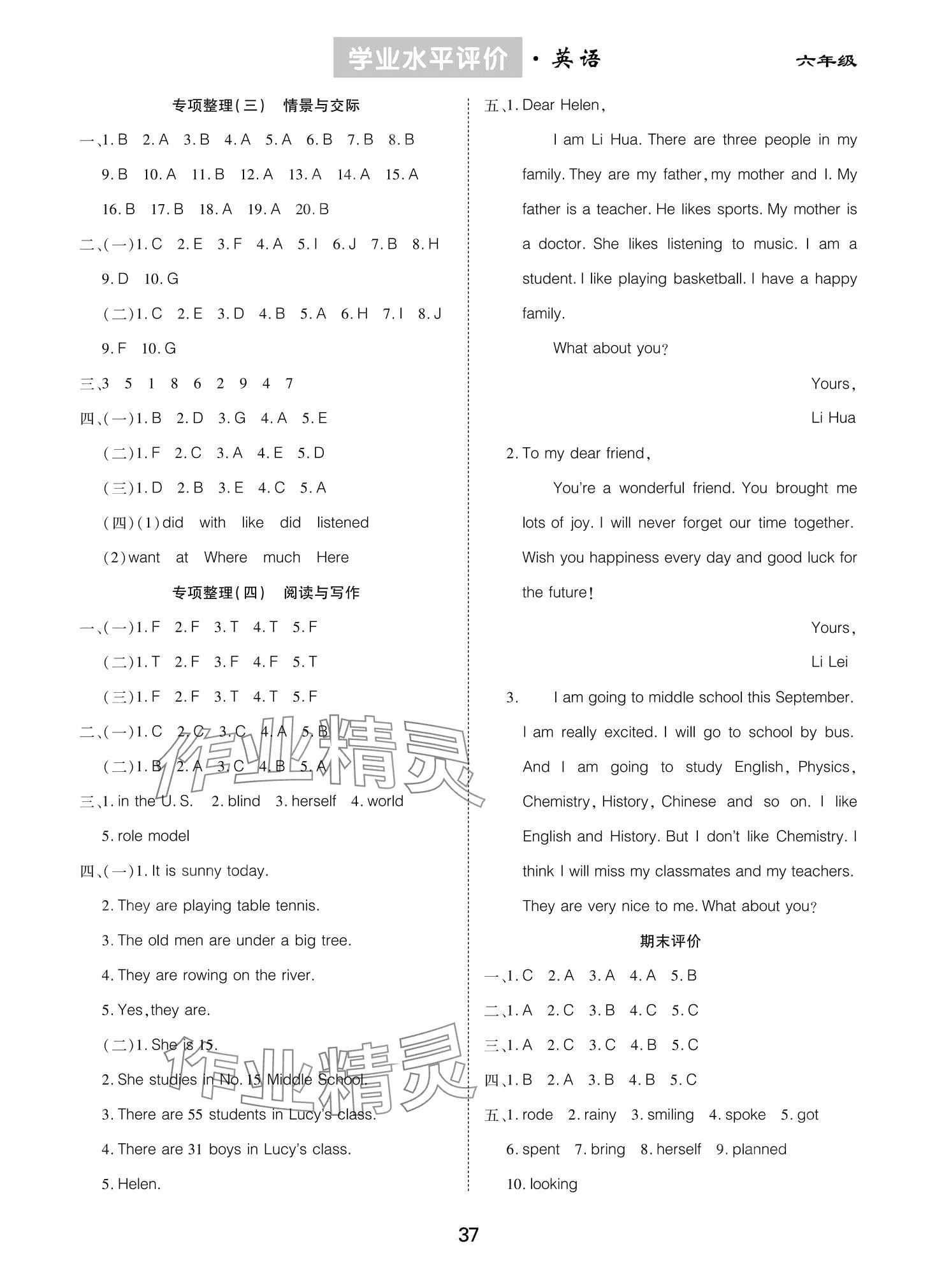 注:目前有些书本章节名称可能整理的还不是很完善,但都是按照顺序排列的,请同学们按照顺序仔细查找。练习册 2024年学业水平评价六年级英语下册外研版 答案主要是用来给同学们做完题方便对答案用的,请勿直接抄袭。