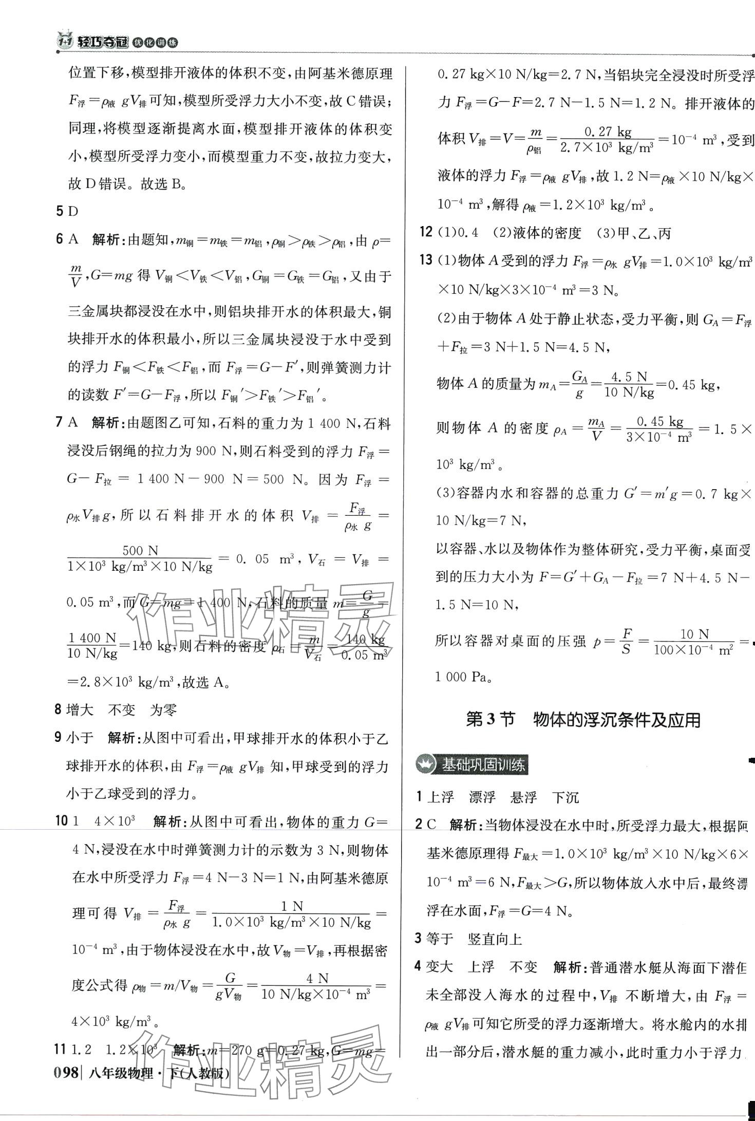 注:目前有些书本章节名称可能整理的还不是很完善,但都是按照顺序排列的,请同学们按照顺序仔细查找。练习册 2024年1加1轻巧夺冠优化训练八年级物理下册人教版 答案主要是用来给同学们做完题方便对答案用的,请勿直接抄袭。