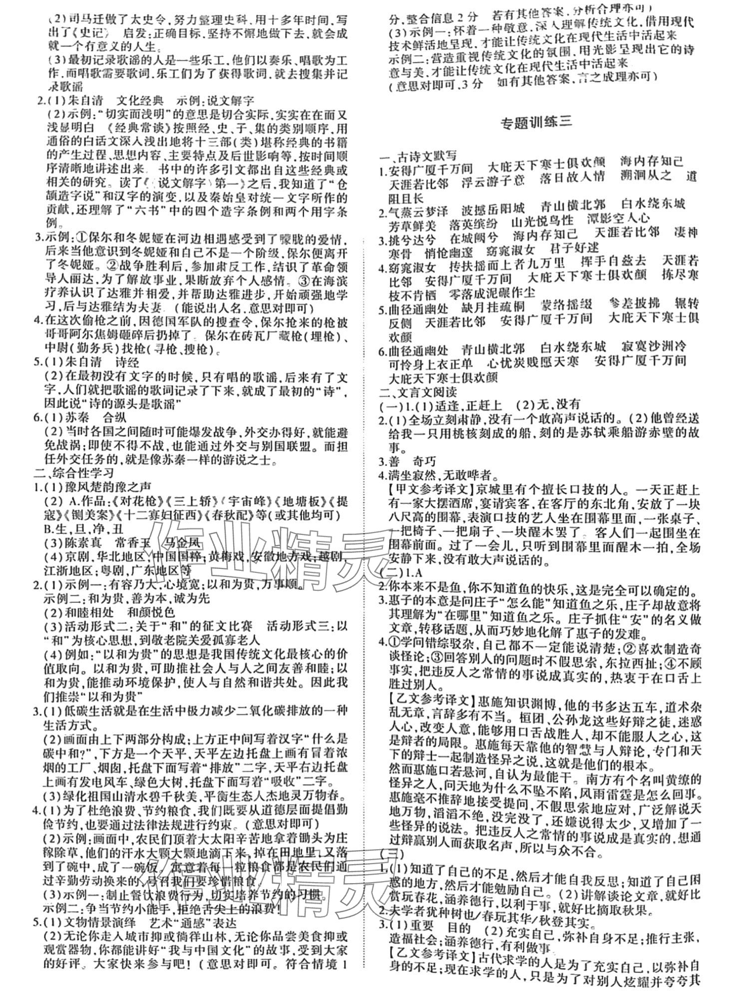 注:目前有些书本章节名称可能整理的还不是很完善,但都是按照顺序排列的,请同学们按照顺序仔细查找。练习册 2024年双料加2单元测试卷八年级语文下册人教版 答案主要是用来给同学们做完题方便对答案用的,请勿直接抄袭。