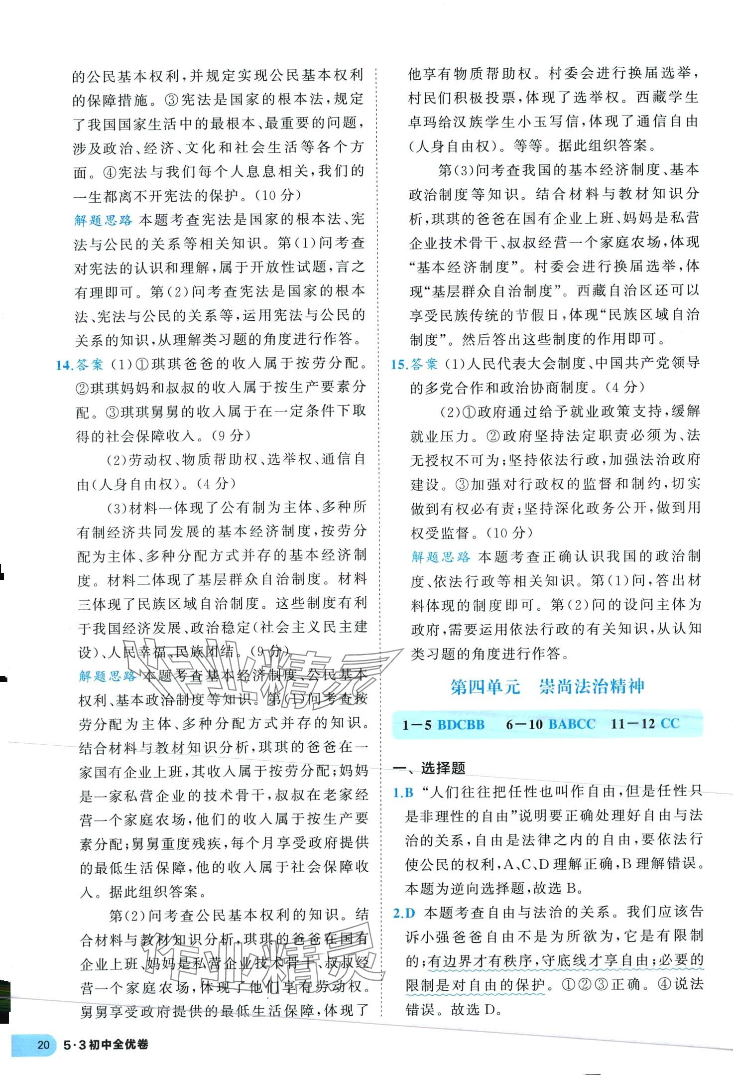 注:目前有些书本章节名称可能整理的还不是很完善,但都是按照顺序排列的,请同学们按照顺序仔细查找。练习册 2024年53全优卷八年级道德与法治下册人教版 答案主要是用来给同学们做完题方便对答案用的,请勿直接抄袭。