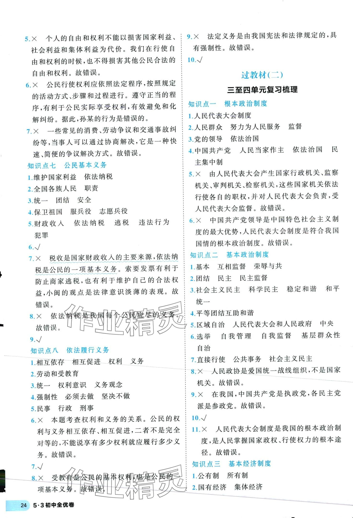 注:目前有些书本章节名称可能整理的还不是很完善,但都是按照顺序排列的,请同学们按照顺序仔细查找。练习册 2024年53全优卷八年级道德与法治下册人教版 答案主要是用来给同学们做完题方便对答案用的,请勿直接抄袭。