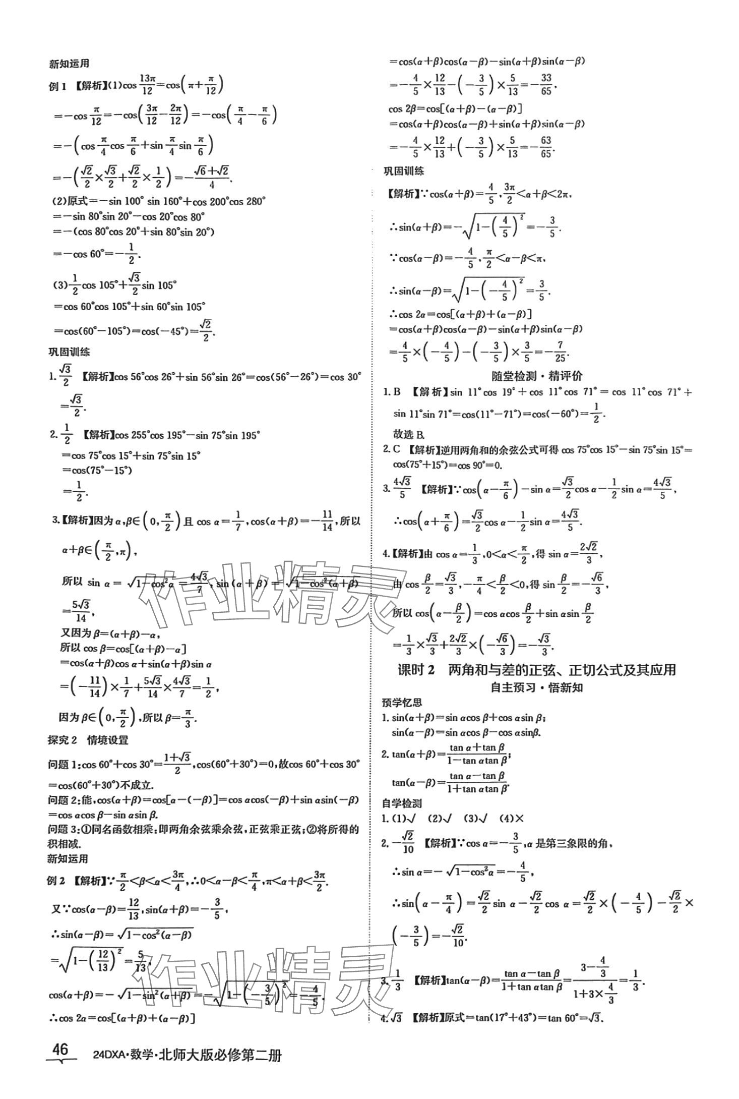 注:目前有些书本章节名称可能整理的还不是很完善,但都是按照顺序排列的,请同学们按照顺序仔细查找。练习册 2024年金太阳导学案高中数学必修第二册北师大版 答案主要是用来给同学们做完题方便对答案用的,请勿直接抄袭。