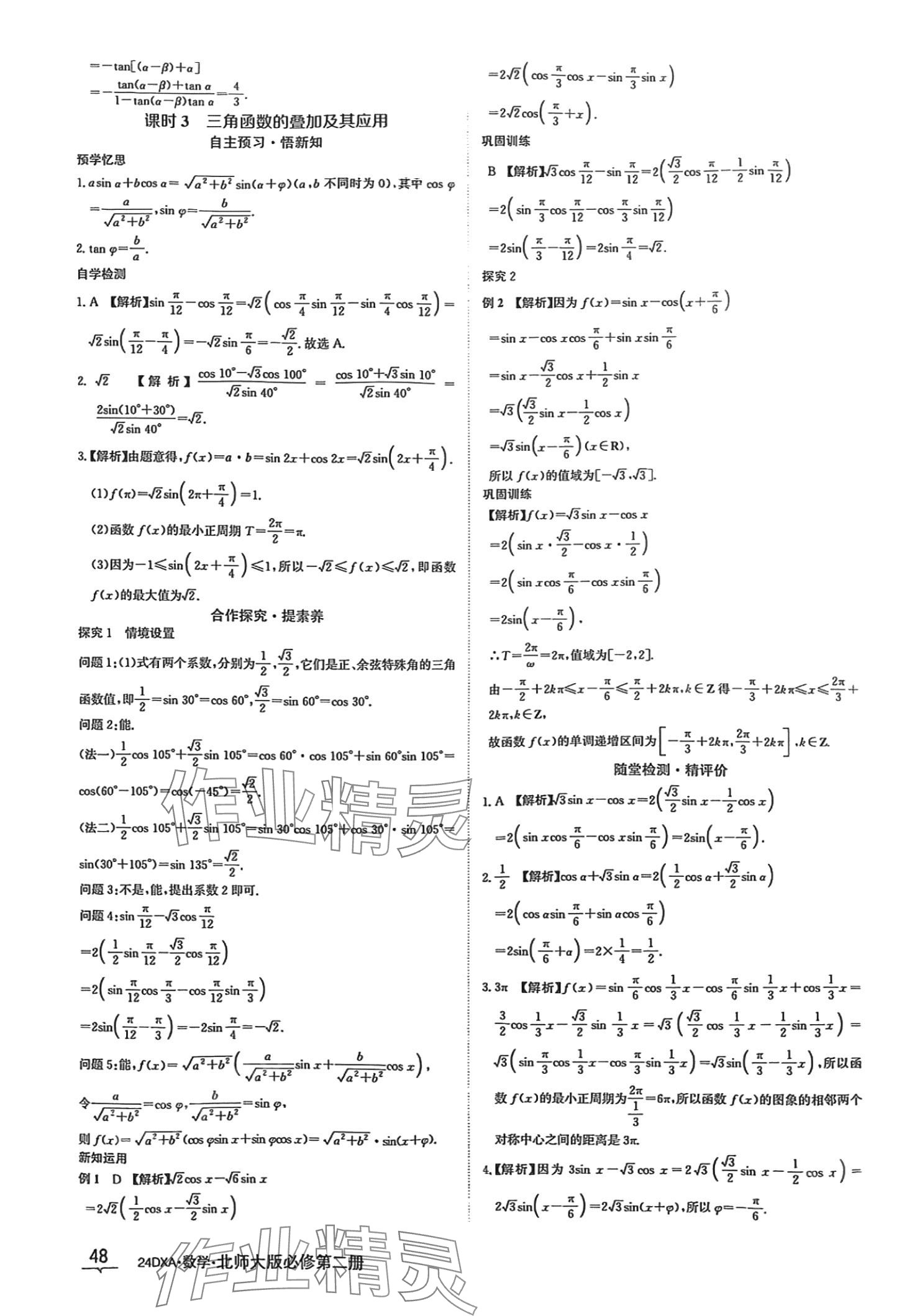 注:目前有些书本章节名称可能整理的还不是很完善,但都是按照顺序排列的,请同学们按照顺序仔细查找。练习册 2024年金太阳导学案高中数学必修第二册北师大版 答案主要是用来给同学们做完题方便对答案用的,请勿直接抄袭。