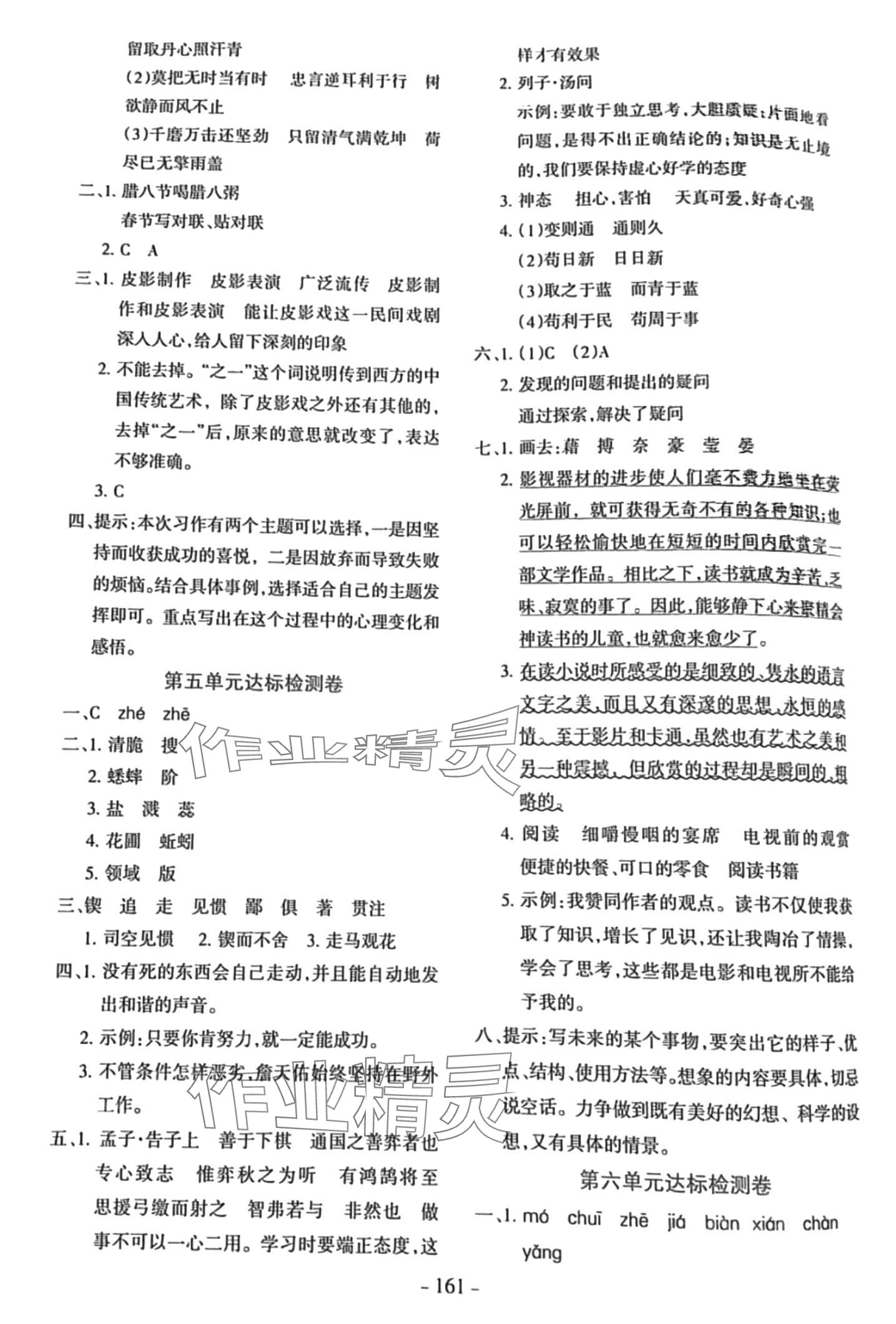 注:目前有些书本章节名称可能整理的还不是很完善,但都是按照顺序排列的,请同学们按照顺序仔细查找。练习册 2024年优学训练六年级语文下册人教版 答案主要是用来给同学们做完题方便对答案用的,请勿直接抄袭。
