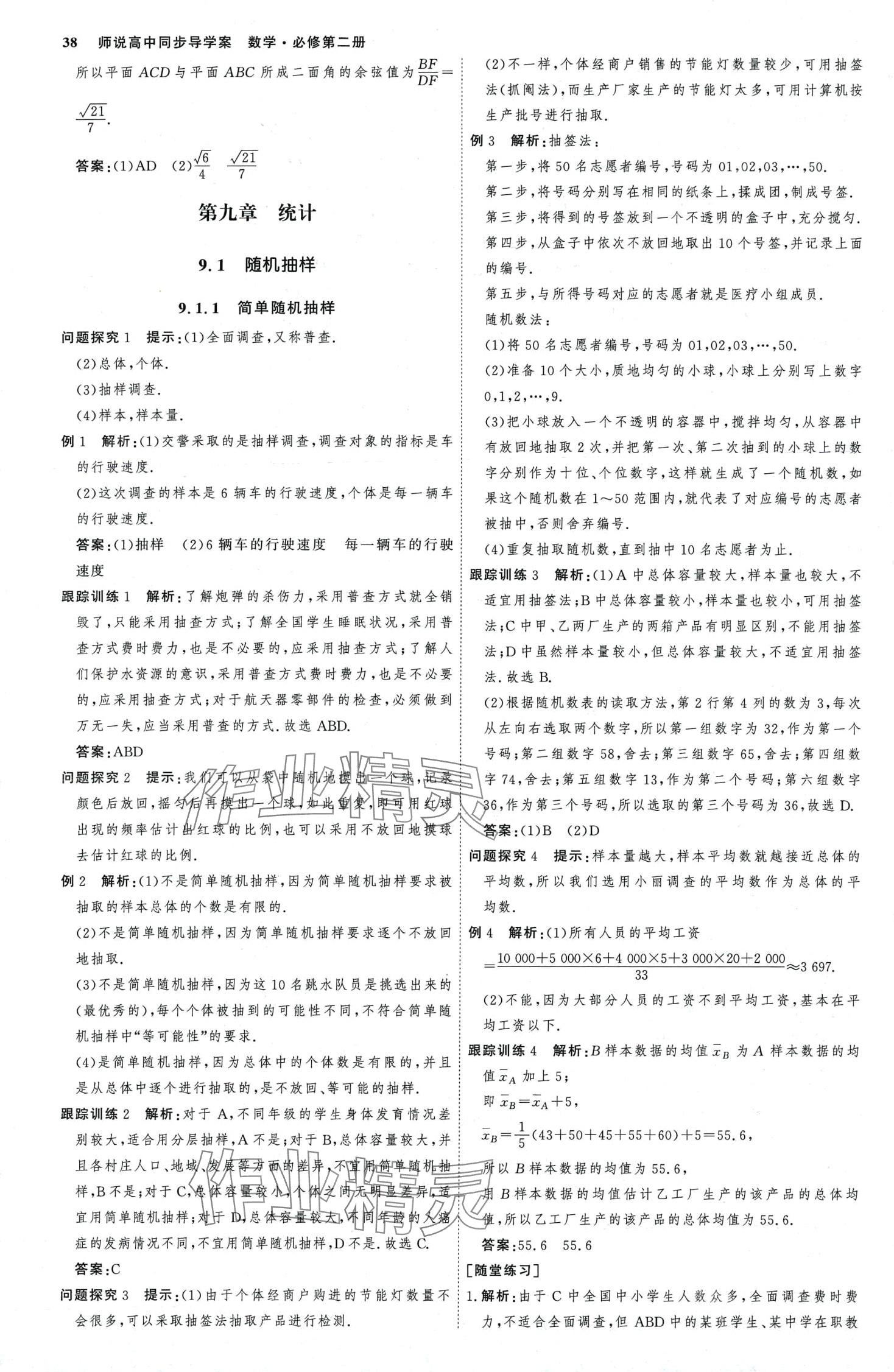 注:目前有些书本章节名称可能整理的还不是很完善,但都是按照顺序排列的,请同学们按照顺序仔细查找。练习册 2024年师说高中数学必修第二册人教版 答案主要是用来给同学们做完题方便对答案用的,请勿直接抄袭。