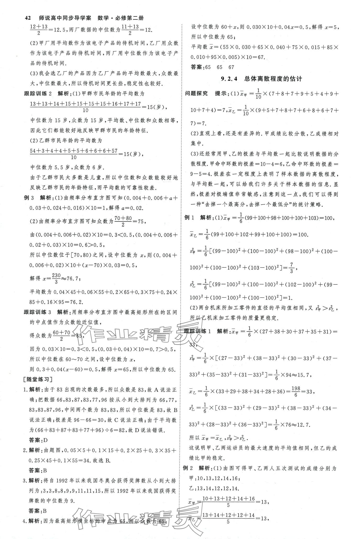 注:目前有些书本章节名称可能整理的还不是很完善,但都是按照顺序排列的,请同学们按照顺序仔细查找。练习册 2024年师说高中数学必修第二册人教版 答案主要是用来给同学们做完题方便对答案用的,请勿直接抄袭。