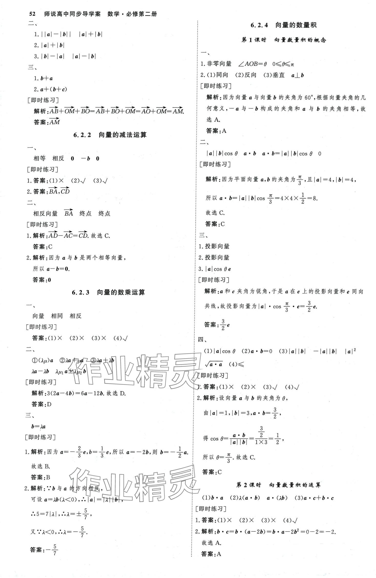 注:目前有些书本章节名称可能整理的还不是很完善,但都是按照顺序排列的,请同学们按照顺序仔细查找。练习册 2024年师说高中数学必修第二册人教版 答案主要是用来给同学们做完题方便对答案用的,请勿直接抄袭。