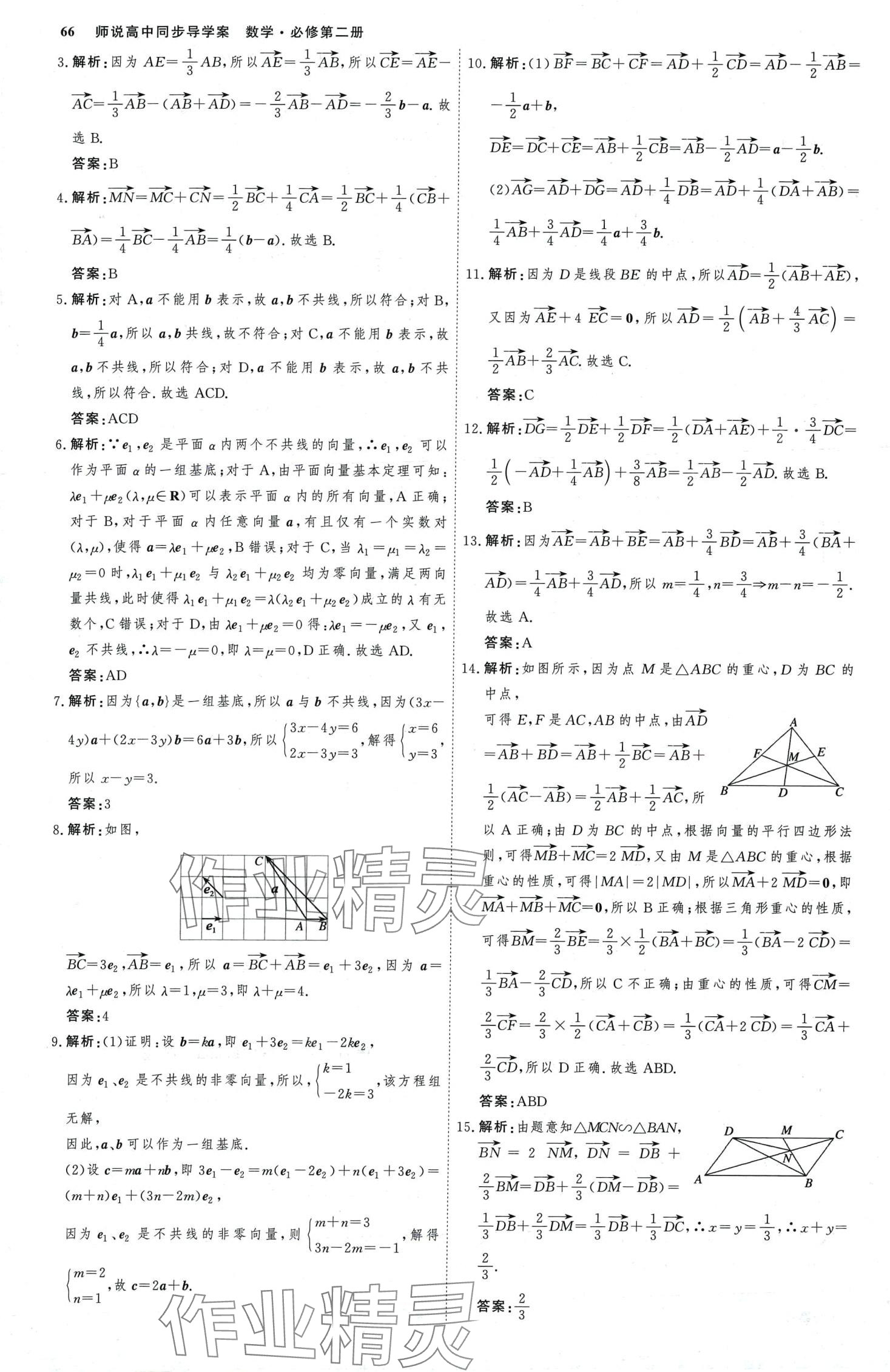 注:目前有些书本章节名称可能整理的还不是很完善,但都是按照顺序排列的,请同学们按照顺序仔细查找。练习册 2024年师说高中数学必修第二册人教版 答案主要是用来给同学们做完题方便对答案用的,请勿直接抄袭。